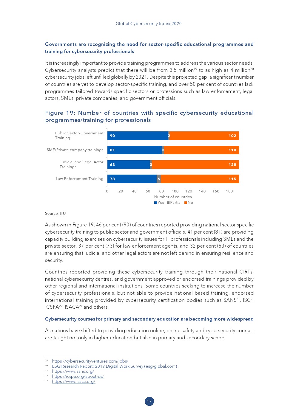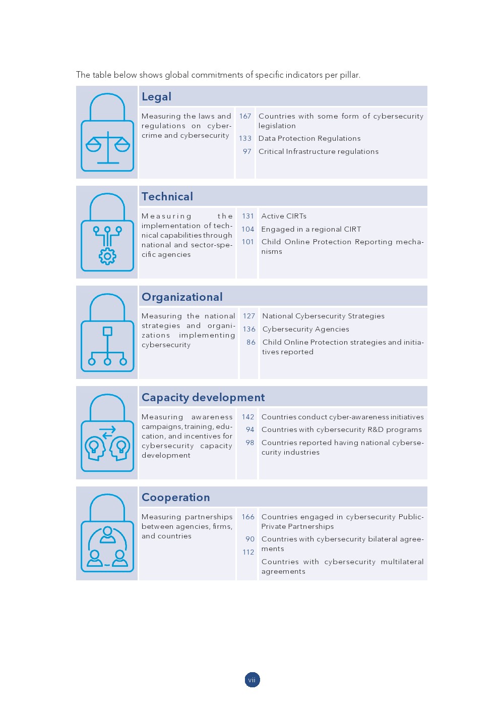 随着网络安全风险、优先事项和资源的发展,GCI 也进行了调整,以更准确地反映各国采取网络安全措施的情况。各国已报告使用 GCI 促进各项与网络安全有关的领域: