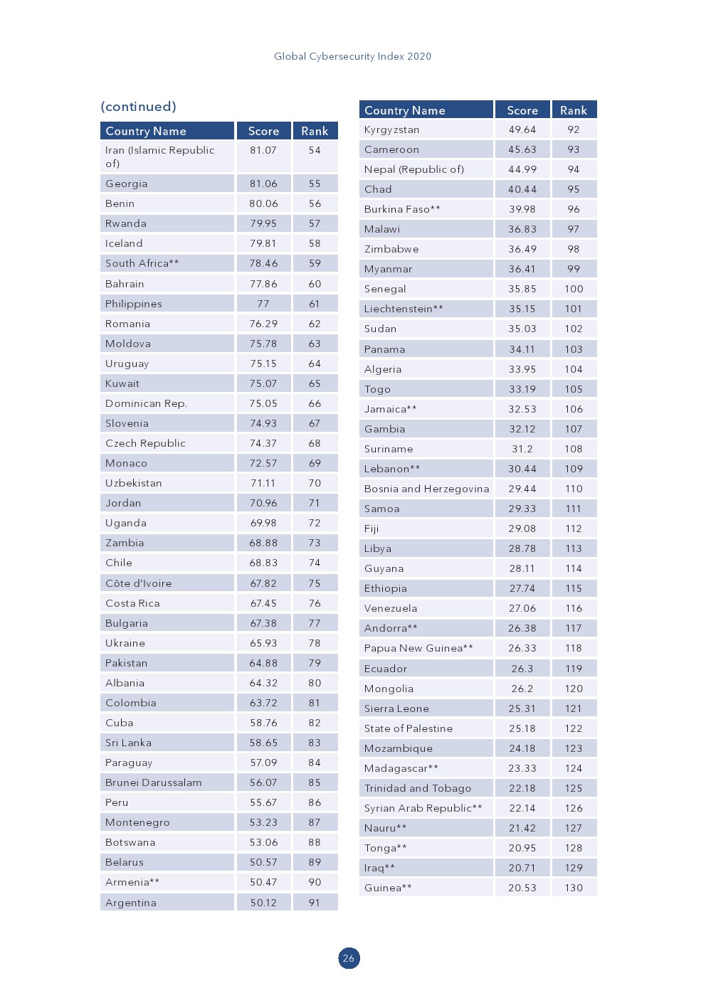 国际电信联盟发布了“2020年全球网络安全指数(GCI)”,旨在衡量193个国际电联成员国对网络安全的承诺,以确定需要改进的领域,并鼓励各国采取行动,并提高对全球网络安全状况的认识。