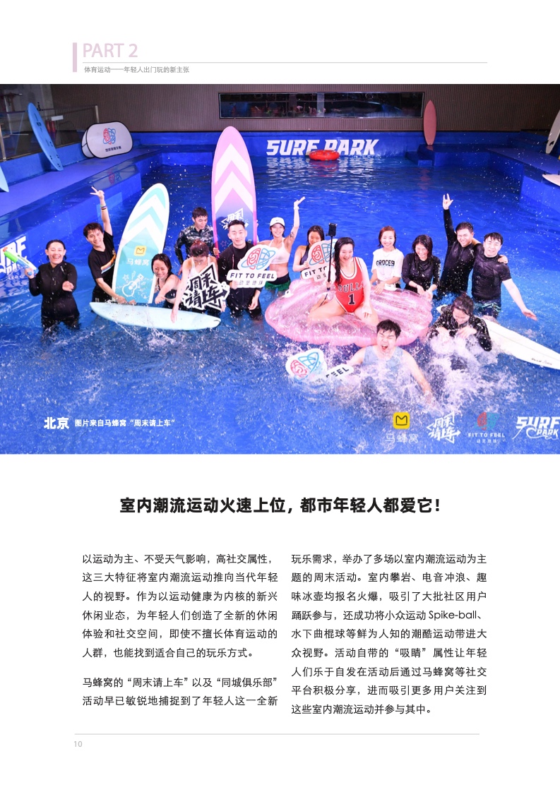 以往大家熟悉的滑雪、徒步和骑行等传统的旅行方式,均在体育旅游的范围内。在疫情之后,年轻人对每个周末都充满期待,飞盘、冰壶、室内冲浪等体育休闲方式进入了他们的视野。据马蜂窝社区活动“周末请上车”的数据显示,飞盘是该活动复购率最高、最受90后喜爱的周末活动。