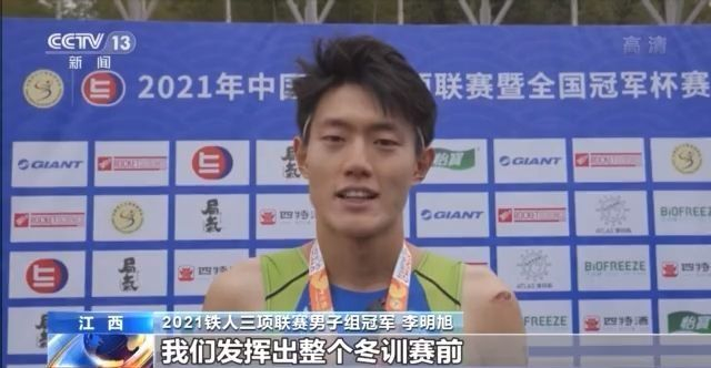 2021铁人三项联赛男子组冠军 李明旭:我们发挥出整个冬训赛前准备工作的一个正常水平,整体来说还算比较满意吧。