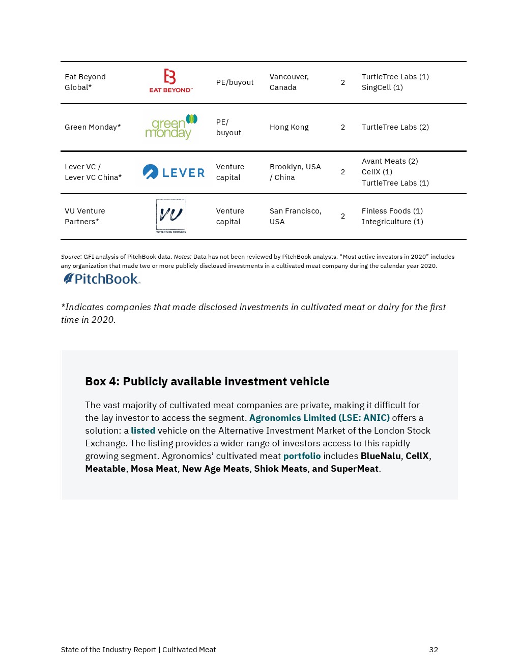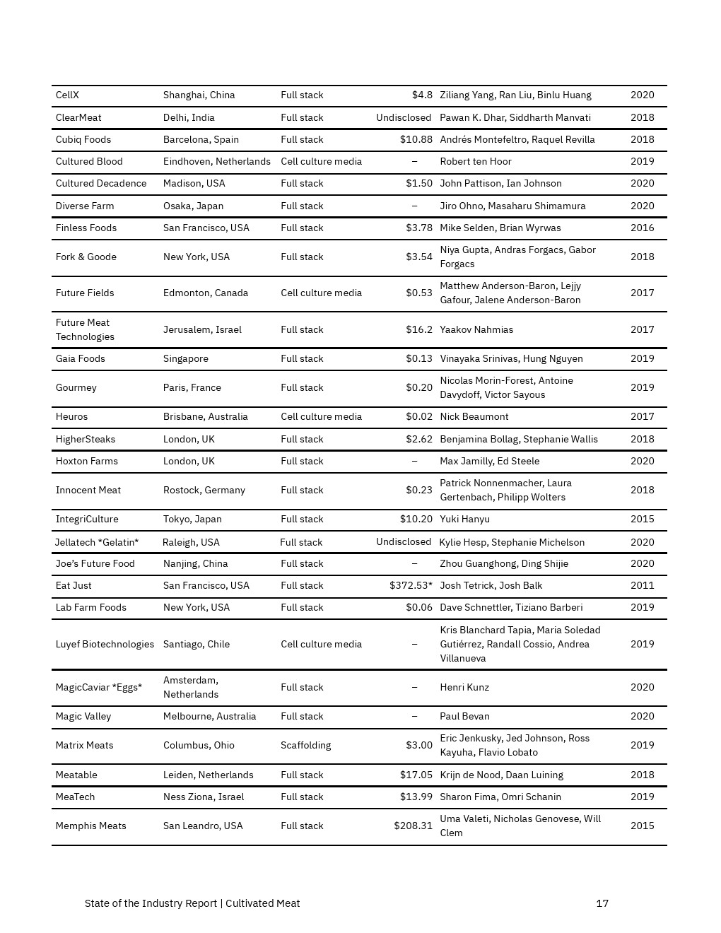 目前,该行业的商业格局由70多家初创企业组成,专注于开发人造肉类原料、服务或最终产品。另有 40 多家以生命科学为主的公司已公开宣布正式计划业务线,满足人造肉类初创公司制造和基础设施需求。处于该行业领先地位的公司目前正在实验规模生产人造肉,这是评估工业规模生产可行性的关键早期步骤。