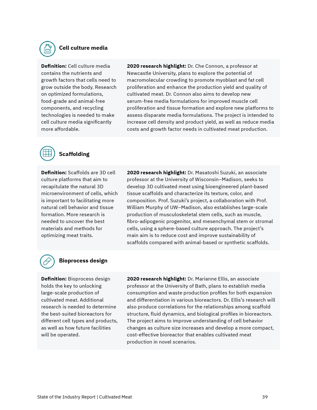 研究表明,根本性的技术突破并不是最终实现经济上可行的规模化人造肉生产的必要条件,但可以降低成本和提高产量。在此过程中仍然存在化学、生物和机械工程挑战。