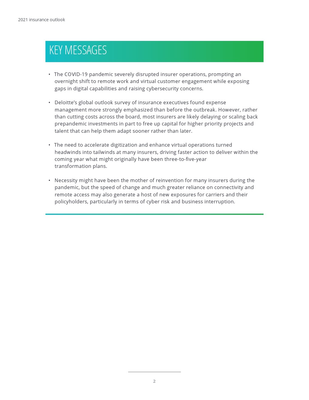 德勤发布了新报告“2021年保险业展望”。COVID-19大流行严重破坏了保险公司的运营,促使其在一夜之间转向远程工作和虚拟客户参与,同时暴露了数字能力方面的差距并引发了网络安全问题。