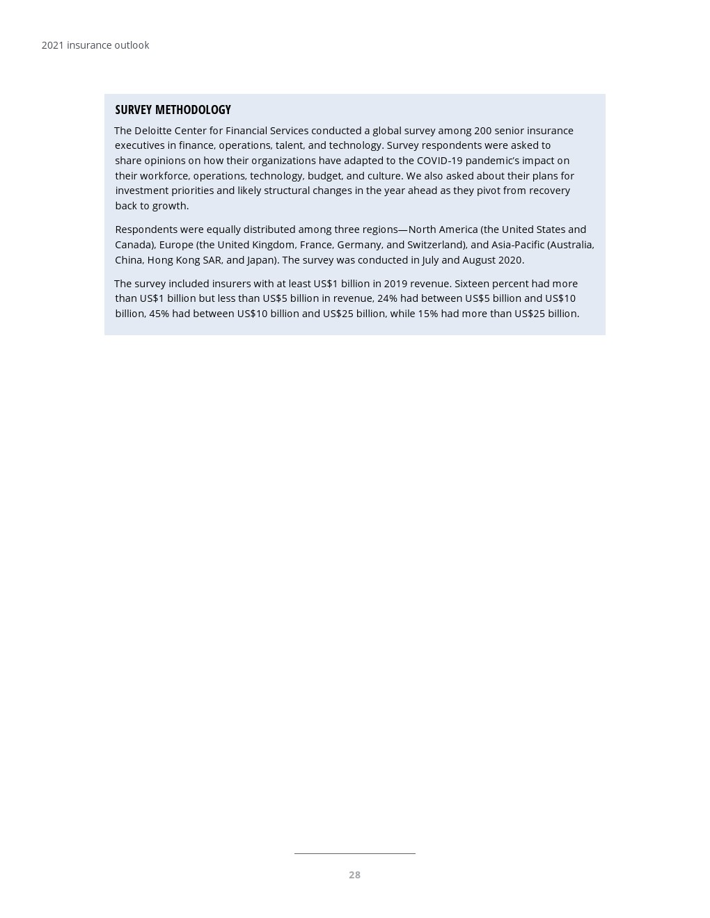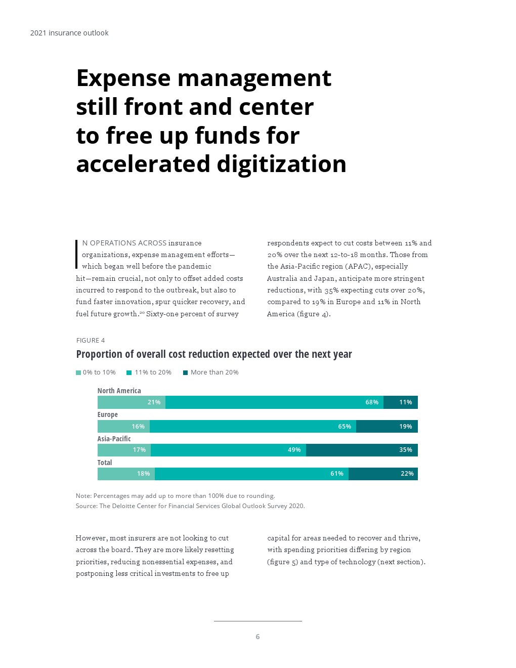 德勤(Deloitte)对保险业高管的全球前景调查发现,与疫情爆发之前相比,费用管理更加受重视。但是,大多数保险公司可能没有推迟全面削减成本的做法,而是推迟或缩减了大流行前期的投资,目的是为优先级更高的项目和人才腾出资金,以帮助他们早日适应。
