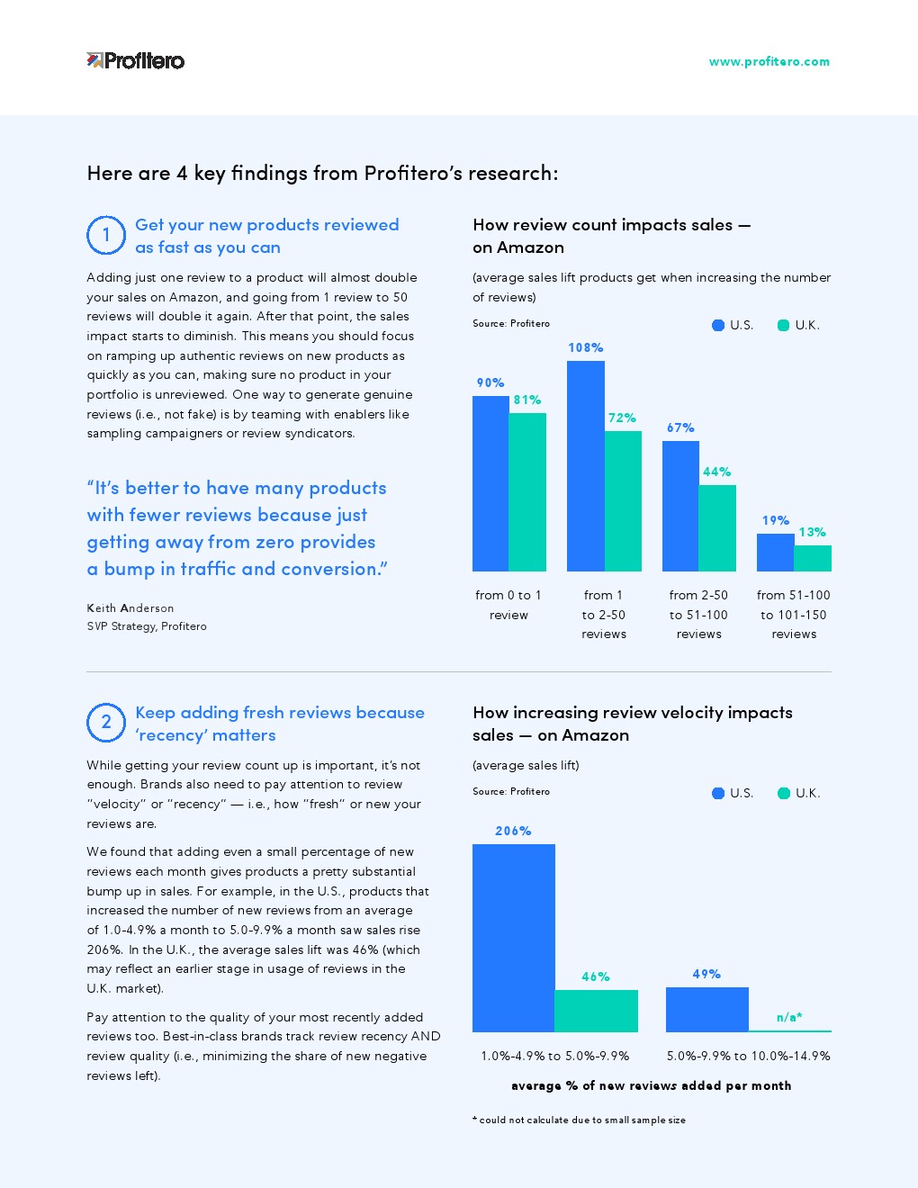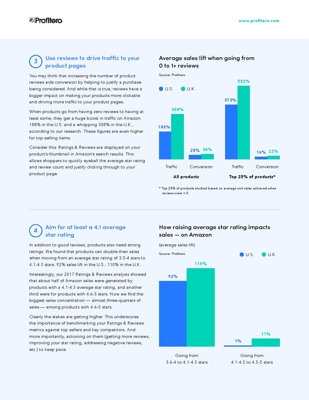 当产品从零评论变为至少有评论时,它们在亚马逊上的流量得到了极大的提升:在美国提升188%,在英国提升308%。对于最畅销的商品,这些数字甚至更高。