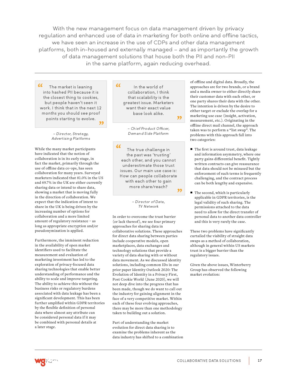 Winterberry Group发布了新报告“协作数据解决方案”,当隐私法规变得越来越常见,新的后cookie时代迫使人们重新思考如何最好地优化收入并在各个渠道之间实现一致的消费者互动。