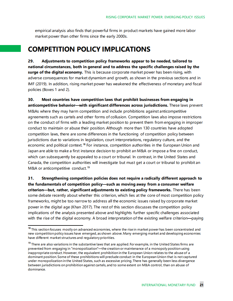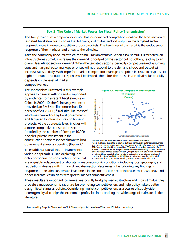 IMF的最新研究表明,市场支配力的关键指标正在上升——例如,相比边际成本的加价幅度,或者某一部门四大企业的收入集中度。受疫情影响,我们估计当前发达经济体的市场集中度增加的幅度,至少相当于2000-2015年底15年间的增幅。即使是在那些从危机中受益的部门(如数字部门),占市场主导地位的企业也是最大的赢家之一。