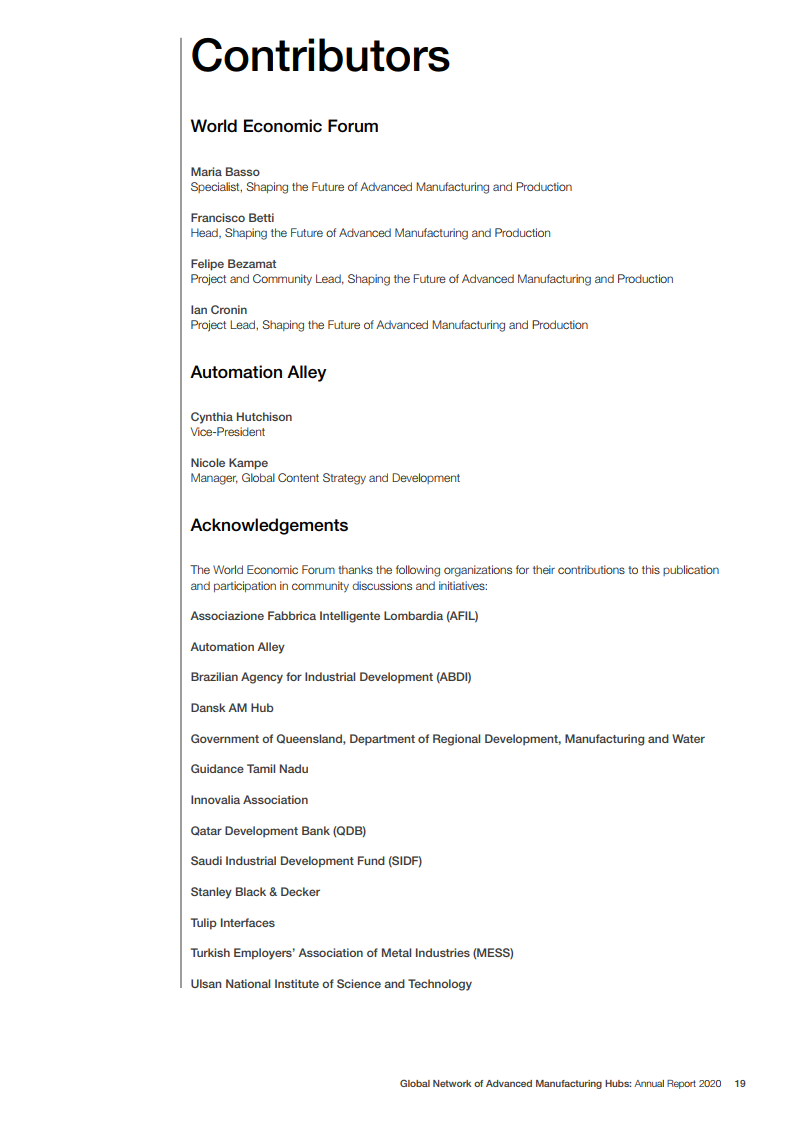 2020年年度报告概述了全球网络的情况,强调了这些区域生态系统内的具体举措,并深入了解了全球网络在2020年的合作努力和产出。报告还概述了正在进行的、计划中的和未来的交叉合作机会,以帮助推动全球先进制造业创新。