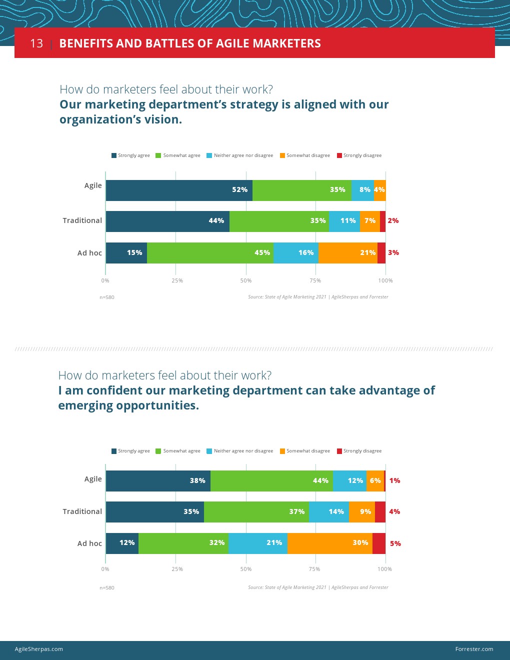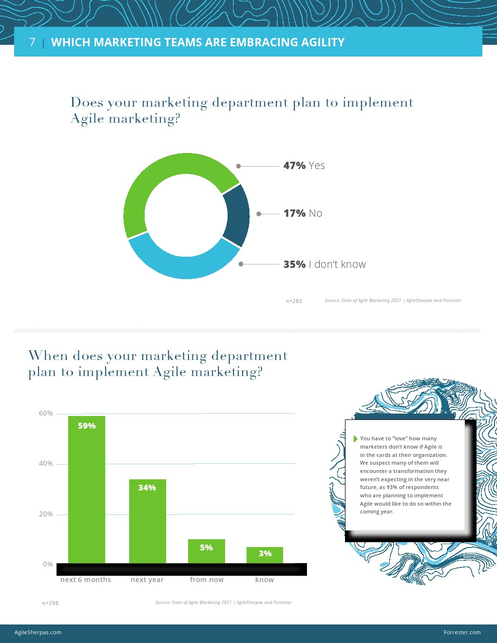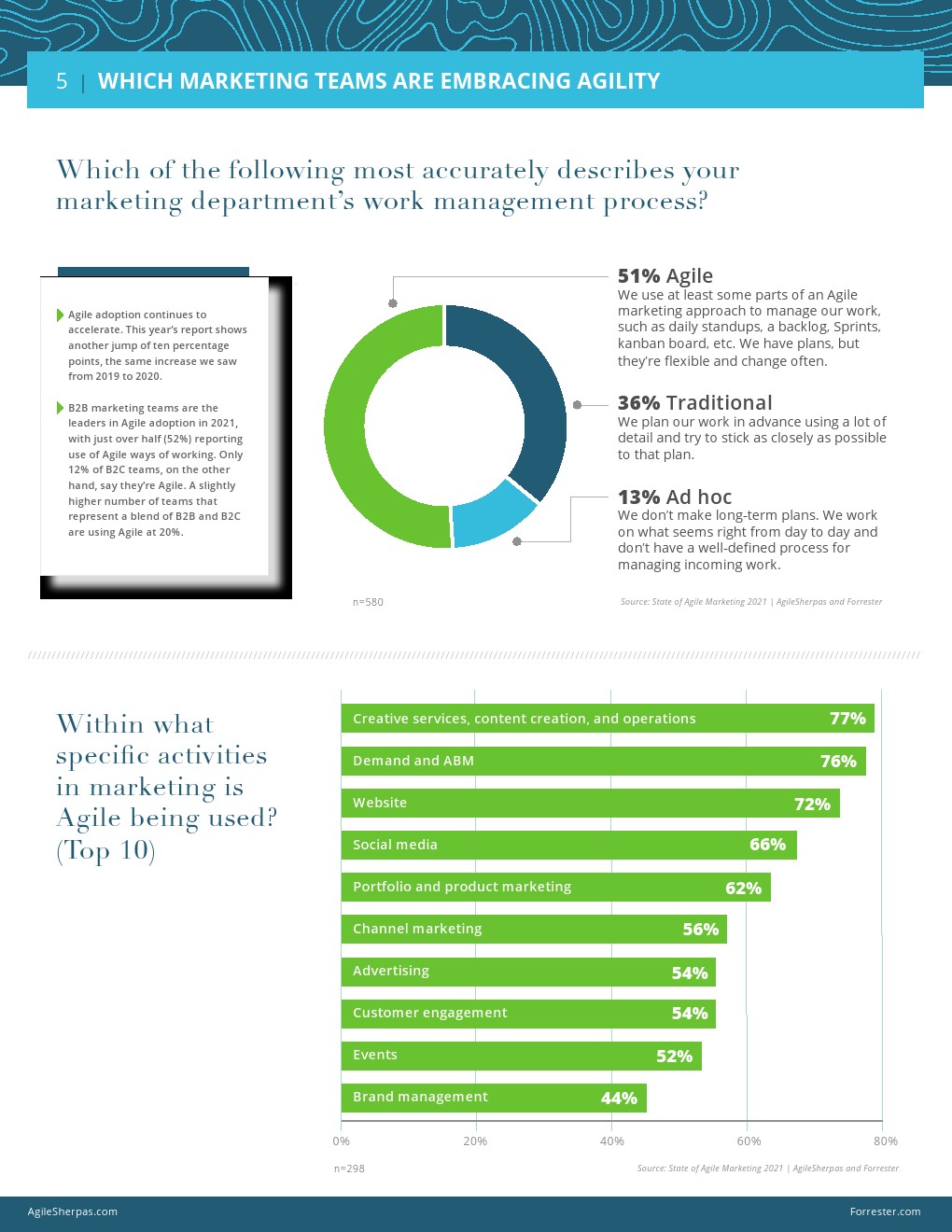 AgileSherpas发布了“2021年敏捷营销报告”,采用敏捷营销的营销人员比例有所上升,从去年的41%上升到今年的51%。那些目前没有采用的营销人员中有59%计划在未来6个月内采用这种做法。