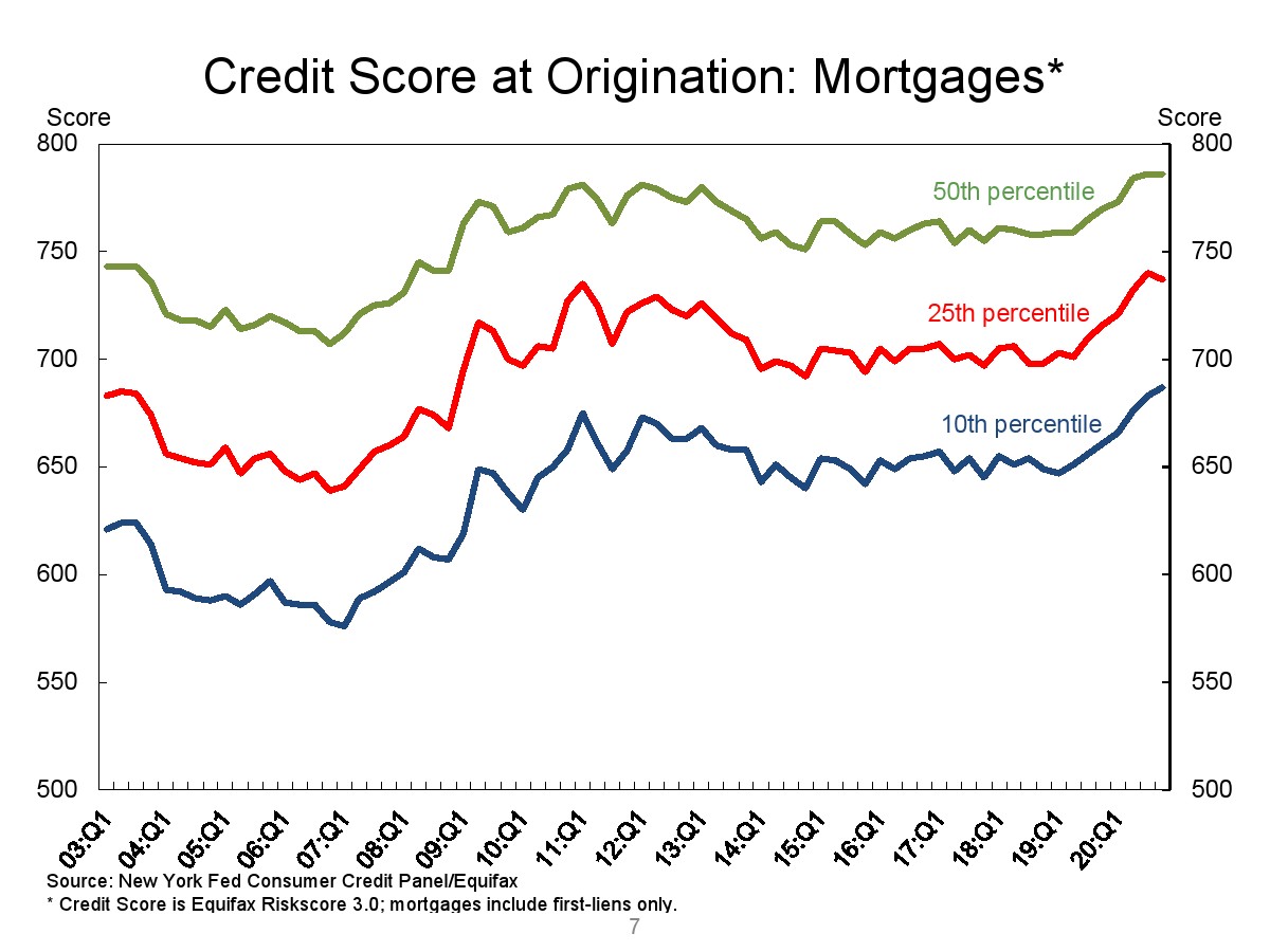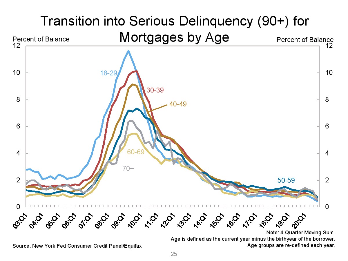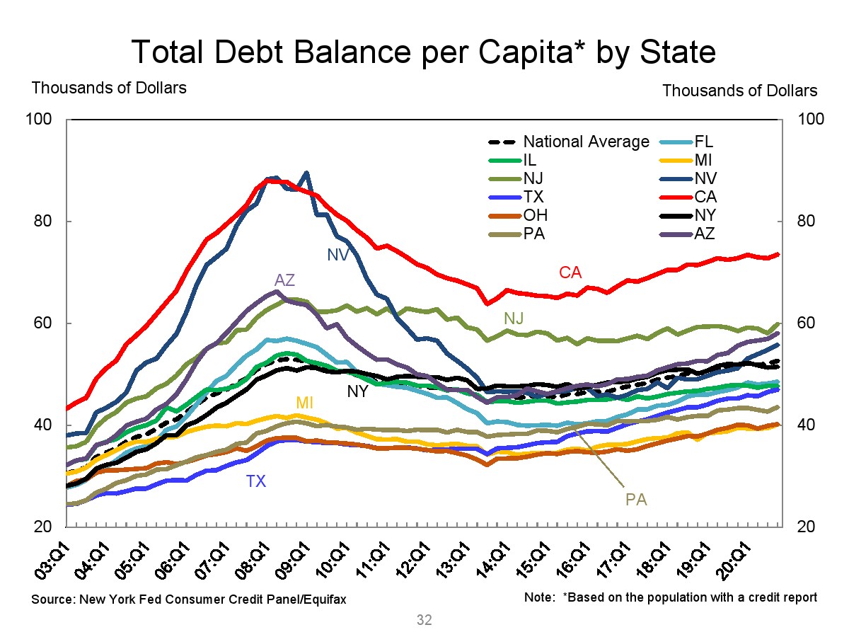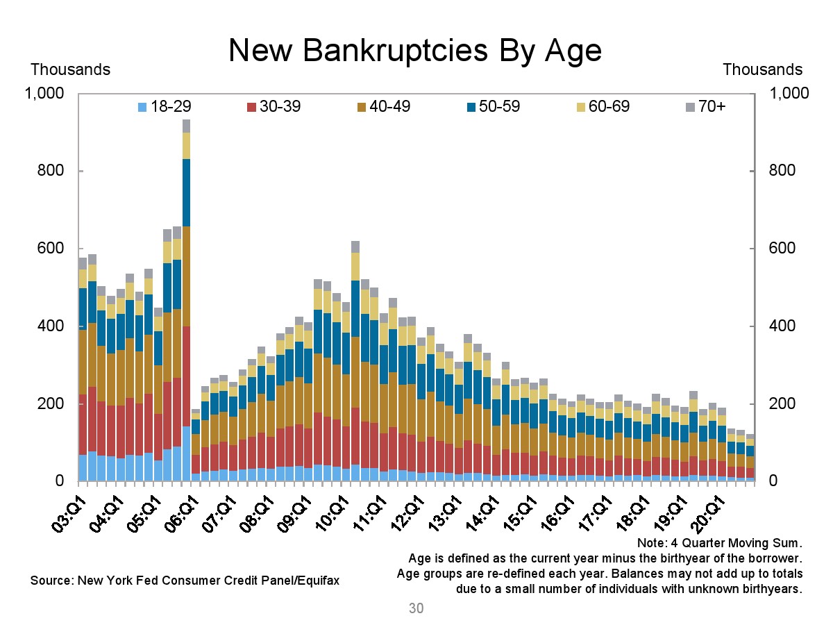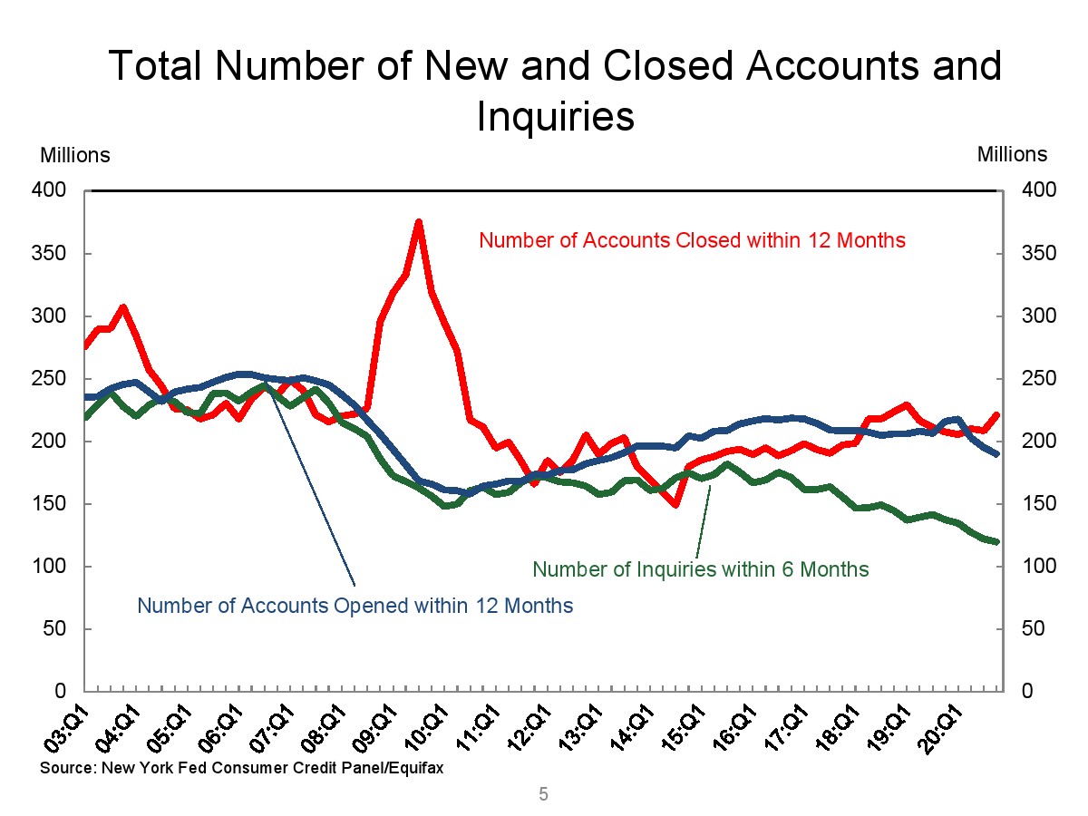 2020年第四季度,新发行的房屋抵押贷款债务为1.2万亿美元。2020年下半年,大约30,000个人的信用报告中添加了新的止赎抵押品赎回权。第四季度未偿还的学生贷款债务为1.56万亿美元,比第三季度增加了90亿美元。2020年第四季度,约有6.5%的学生债务拖欠90天以上或违约。