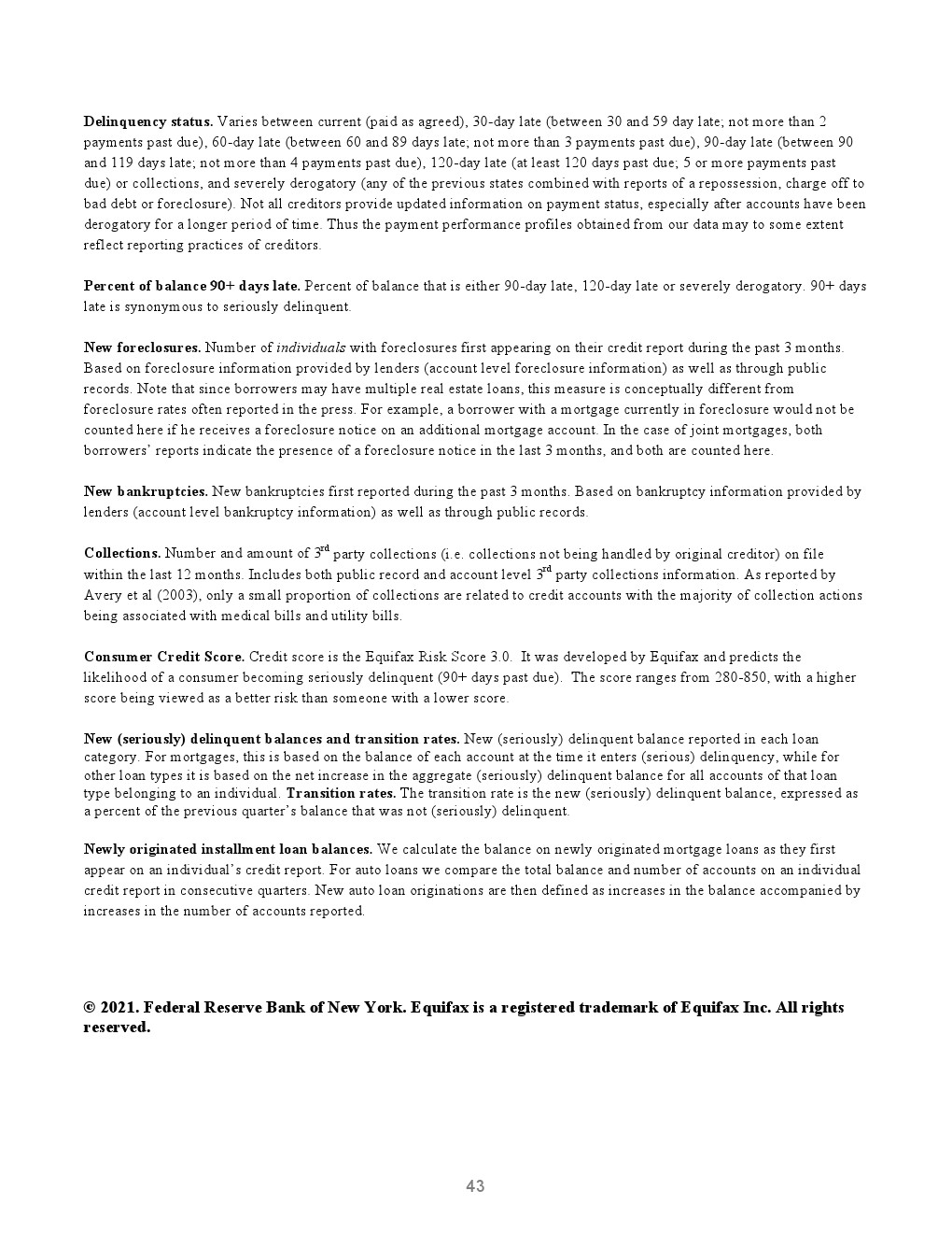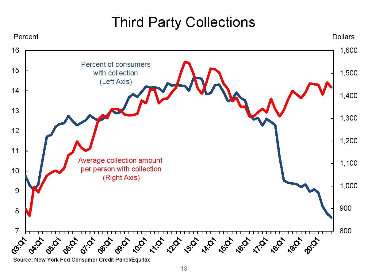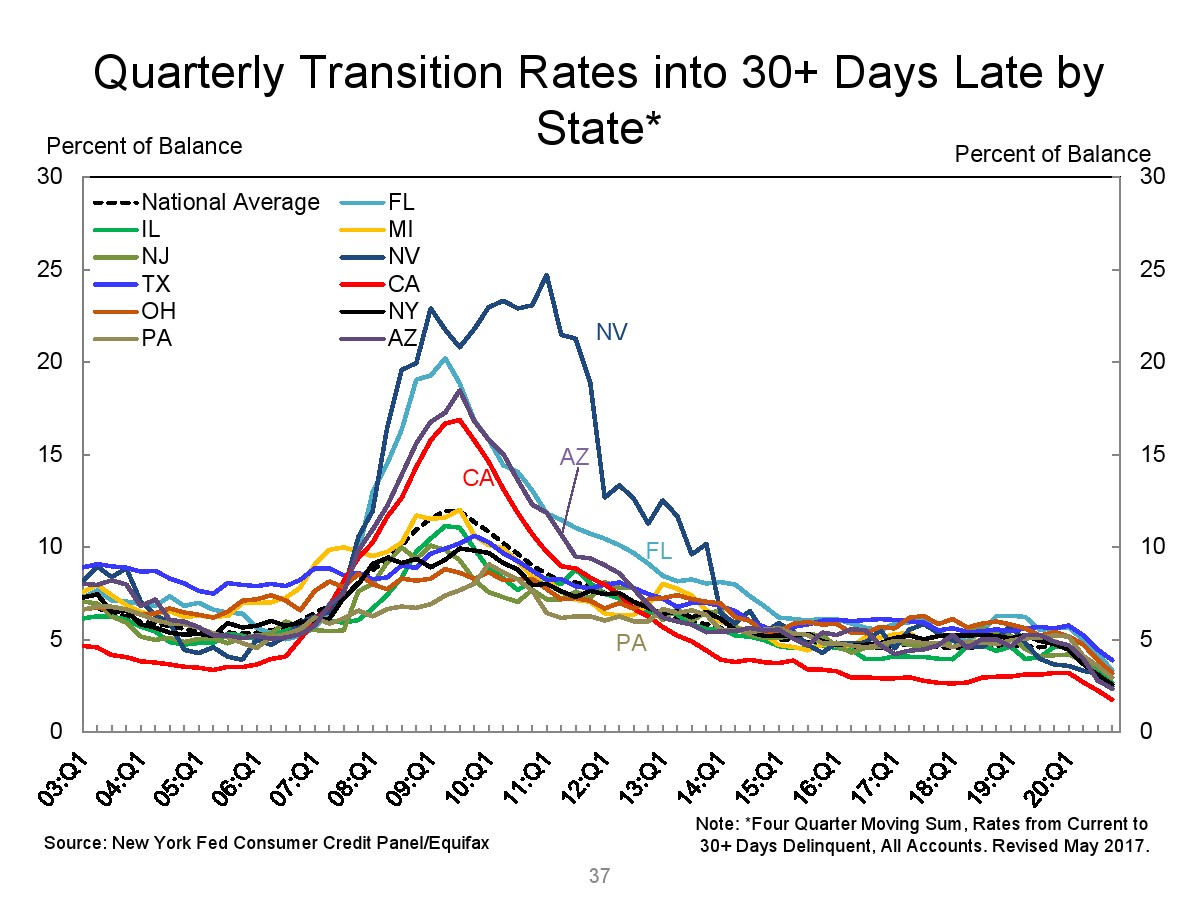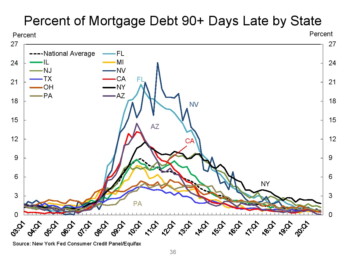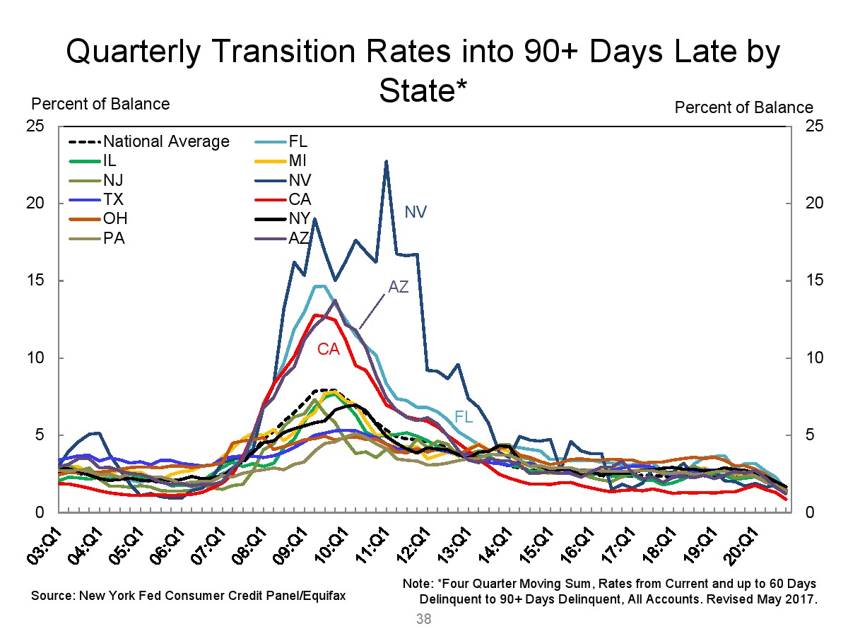 2020年第四季度,新发行的房屋抵押贷款债务为1.2万亿美元。2020年下半年,大约30,000个人的信用报告中添加了新的止赎抵押品赎回权。第四季度未偿还的学生贷款债务为1.56万亿美元,比第三季度增加了90亿美元。2020年第四季度,约有6.5%的学生债务拖欠90天以上或违约。