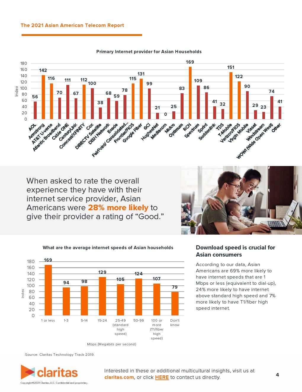 当被要求对互联网服务提供商的整体体验进行评分时,亚裔美国人给他们的提供商“良好”评价的可能性比其他人高 28%