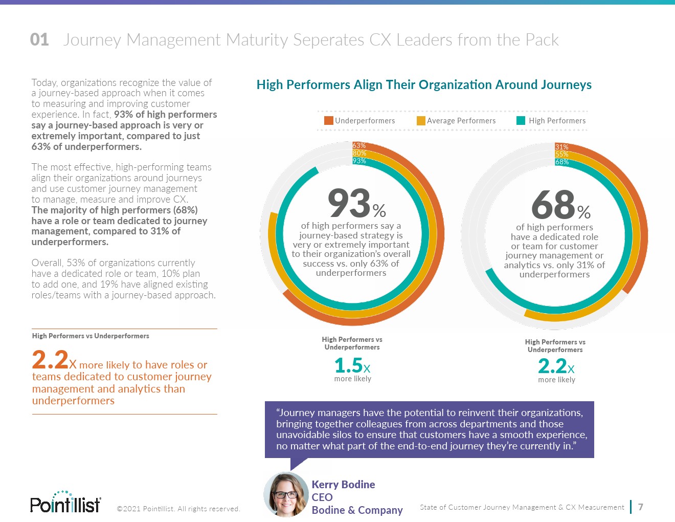 最有效的团队依赖基于旅程的方法来实现CX。优秀的执行者与专业团队合作管理、测量和改进客户体验。高绩效员工对结果更满意。