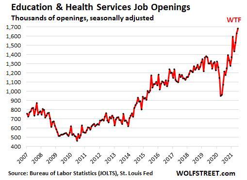 在专业和商业服务部门,6月份未填补的职位空缺数量激增至创纪录的179万个(经季节性调整),比2019年6月增长43%。