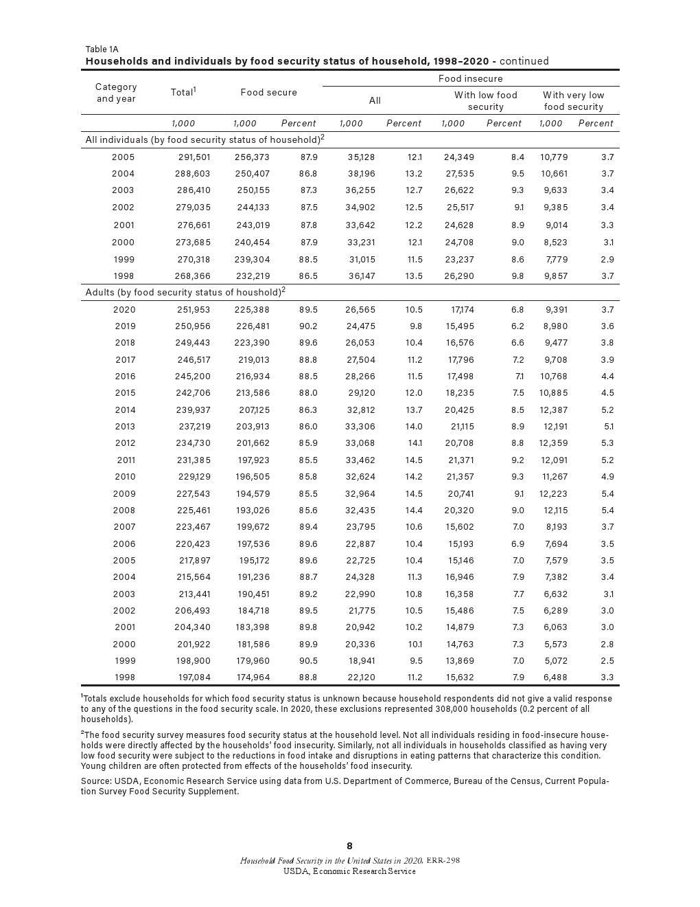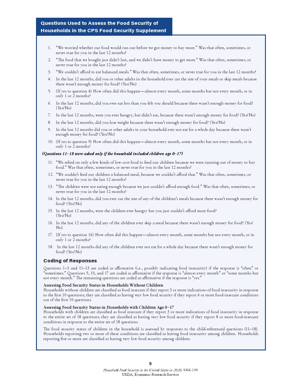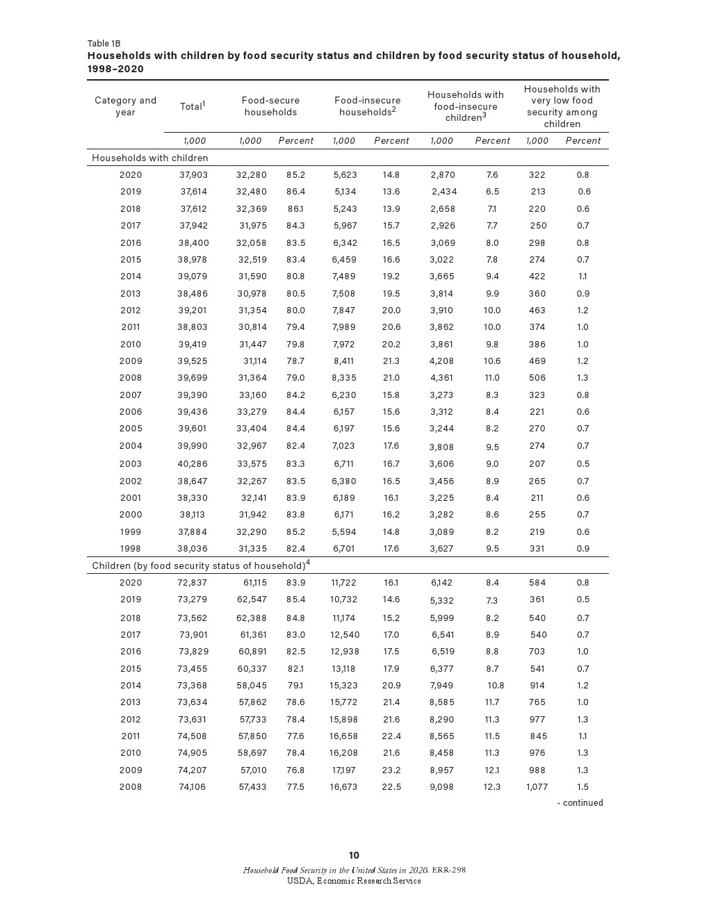 虽然儿童通常不会受到食物安全性极低的威胁和食物摄入减少的影响,但在2020年0.8%的儿童面临食物安全性极低的问题(322000个家庭),2019年这一比例为0.6%。这些家庭报告说,由于没有足够的钱购买食品,儿童挨饿、不吃饭或一整天都没有食物。