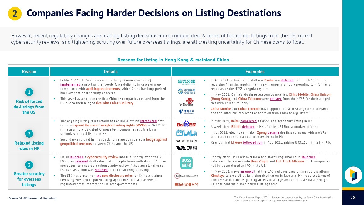 南华早报发布了“2021 年中国互联网报告”,2021 年中国互联网格局将继续快速发展和创新,推动互联网公司发展。