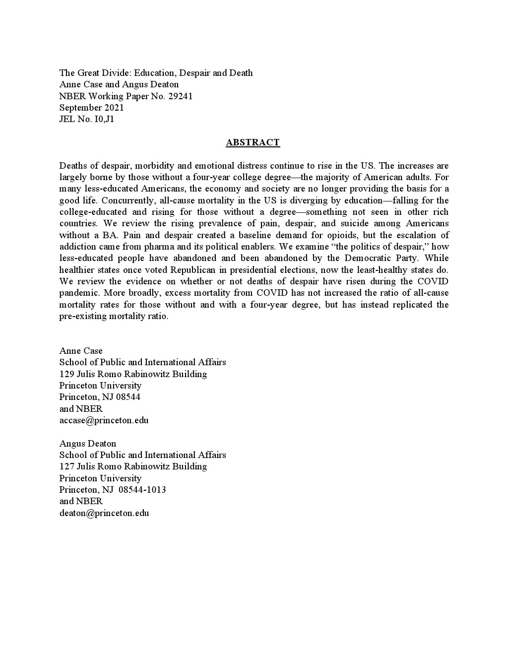 美国国家老龄化研究所发布了新报告“大鸿沟—教育、绝望和死亡”。经济越来越多地服务于一些但不是所有的美国人,那些拥有和没有四年制大学学位的人之间存在着巨大分歧。大学学位现在已经成为“体面工作和社会尊重的条件”。受过大学教育的成年人预计寿命将上升,其他人寿命则将下降。