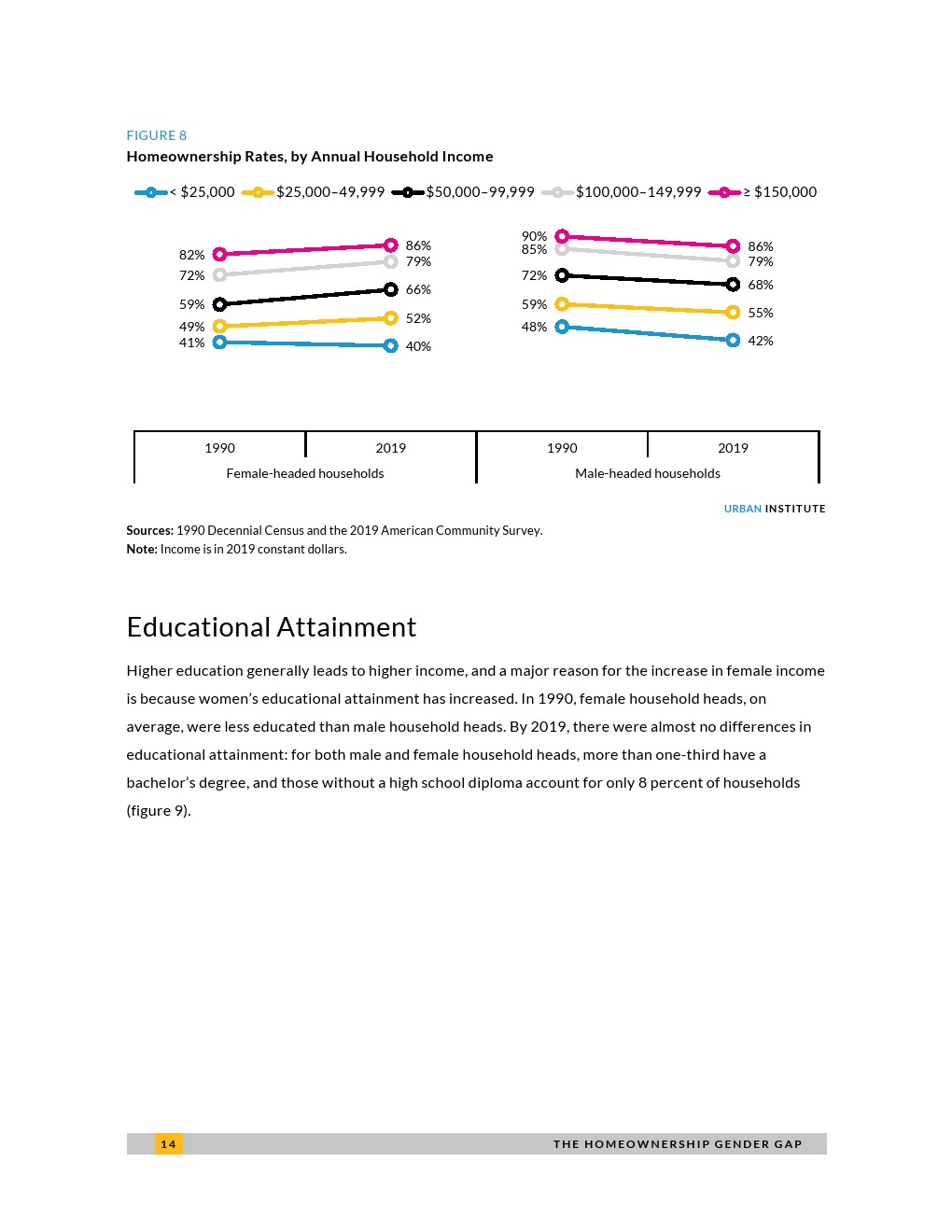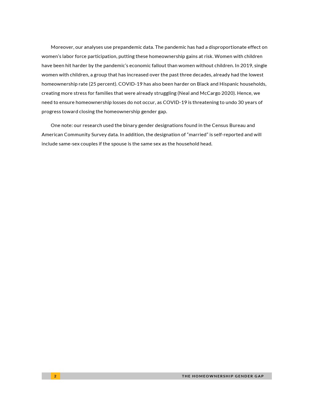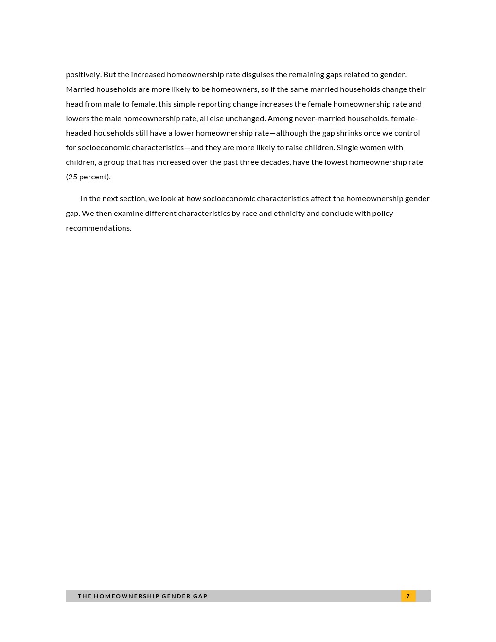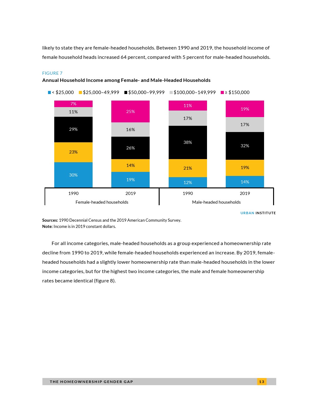 这份报告通过户主的性别调查了房屋所有权情况,以及在过去三十年它是如何变化的。分析探讨了缩小住房所有权性别差距的因素,包括总体以及种族和民族。这种缩小主要归因于家庭收入的增加,其次是更多的已婚妇女成为户主。