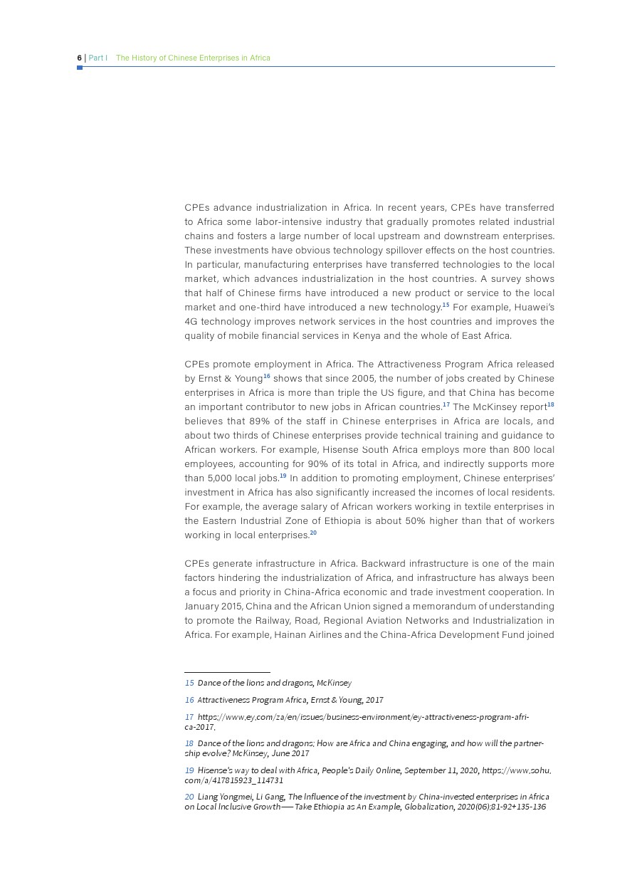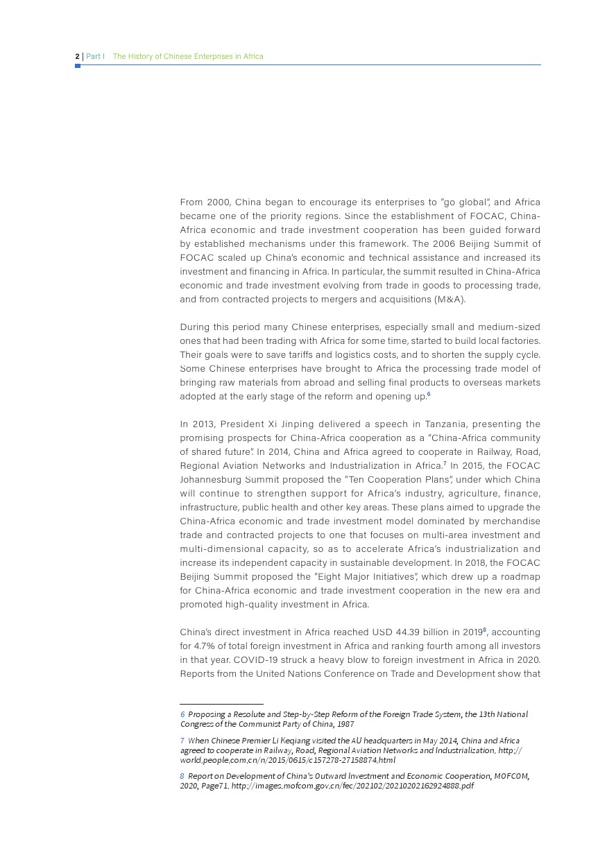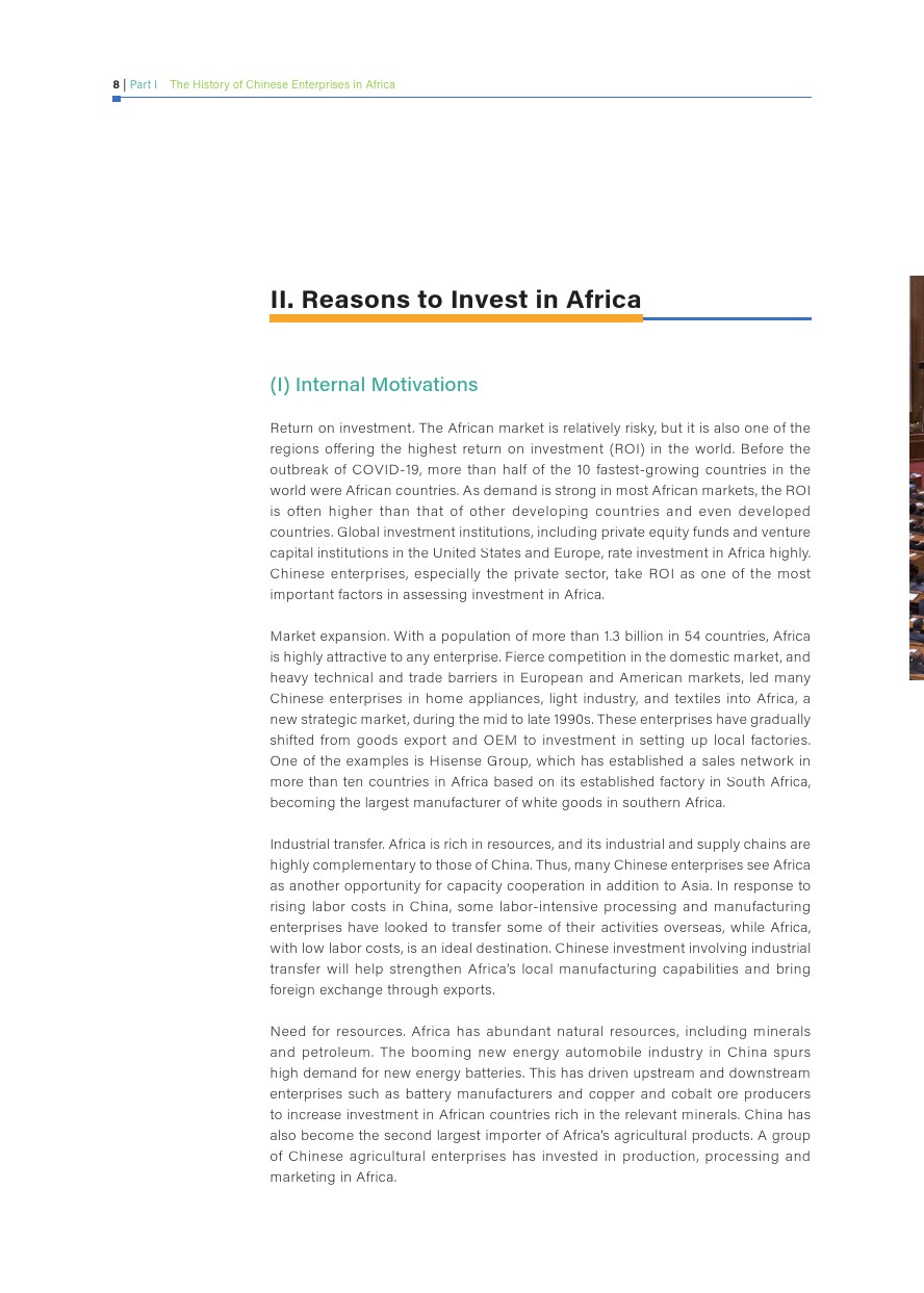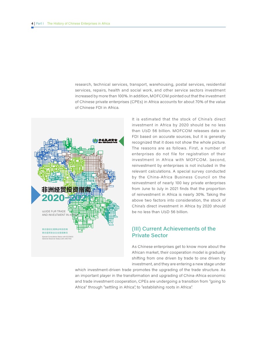 随着对非洲投资的不断增长,私营公司在这一过程中发挥着至关重要的作用。除传统行业外,中国企业正在探索和冒险进入新领域,如中高科技制造业、医疗保健和制药、数字经济、航空业等。