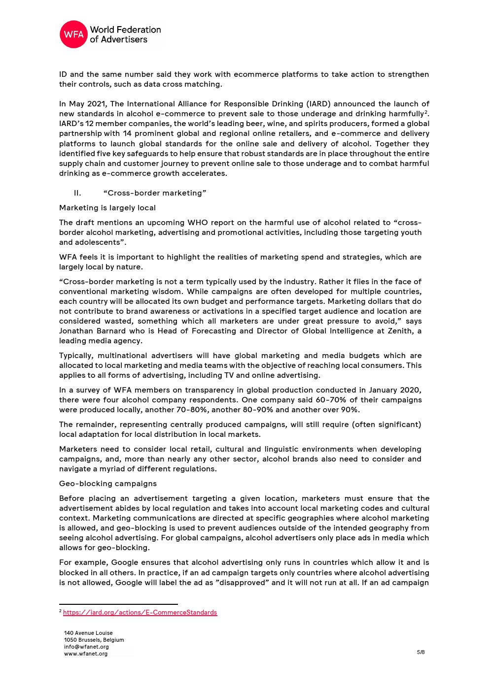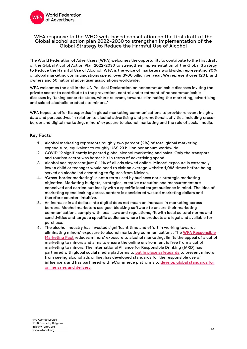 WFA(世界广告主联合会)对世卫组织2022-2030年全球酒精行动计划初稿网络咨询做出回应,以减少有害酒精在全球的使用。