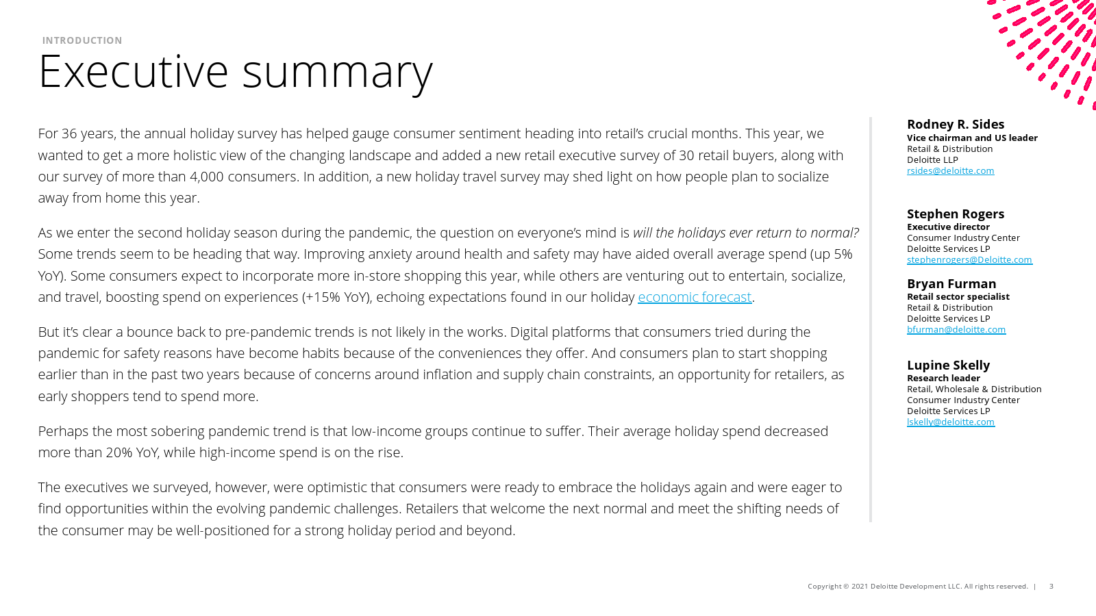 德勤发布了“2021年假日购物季零售调查”,主要发现包括: