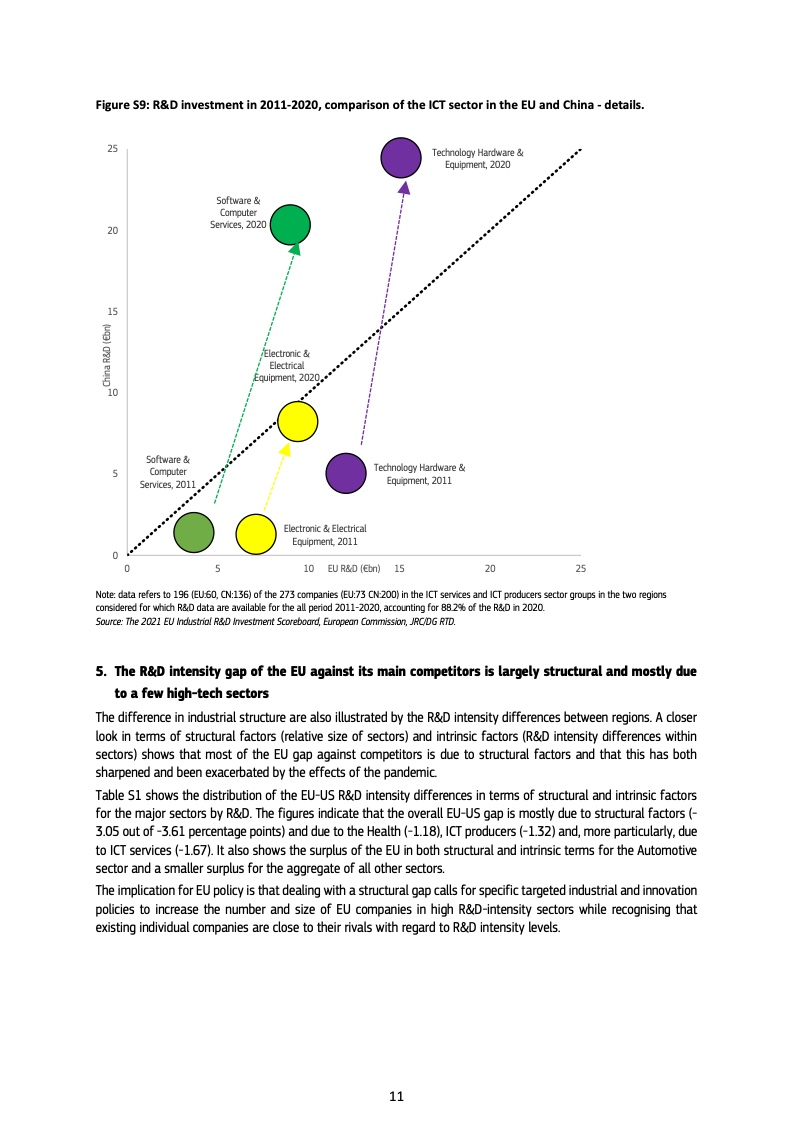 欧盟统计的2020/21年度研发投入前十企业中,谷歌母公司Alphabet以224.7亿欧元位居第一,华为公司以174.6亿欧元排名第二,超过第四名的三星(159亿欧元)、排名第五的苹果公司(152.8亿欧元)、排名第九的英特尔(110.5亿欧元)。