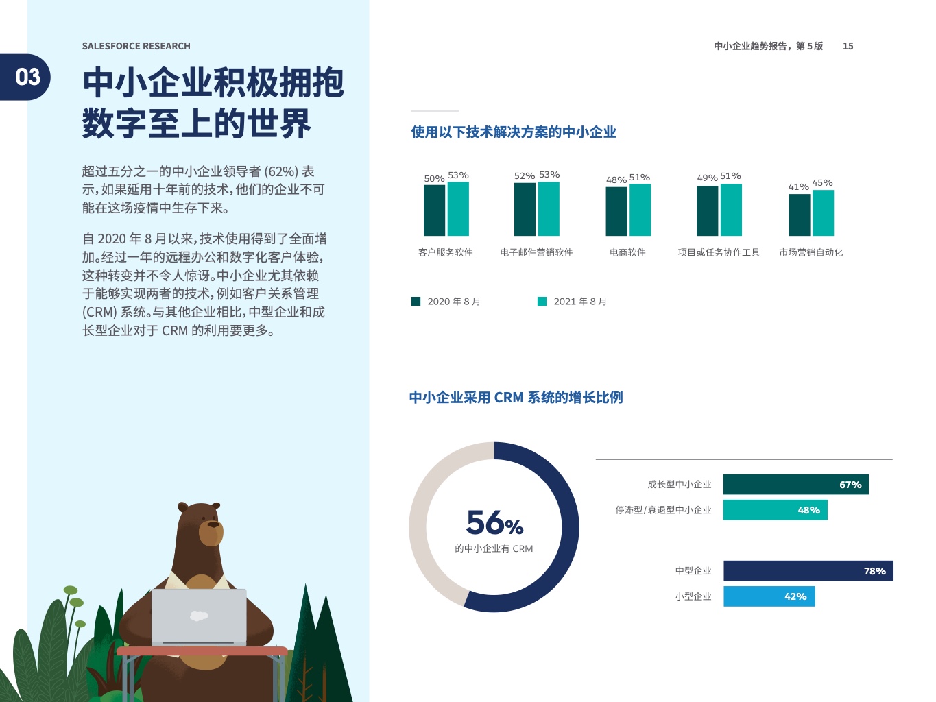 他们致力于为 员工提供透明的沟通和出色的灵活性,同时满足客户的期望。超过 70% 的中 小企业表示,他们的客户希望进行在线交易,几乎同样比例的企业已经拥有了 电子商务业务。
