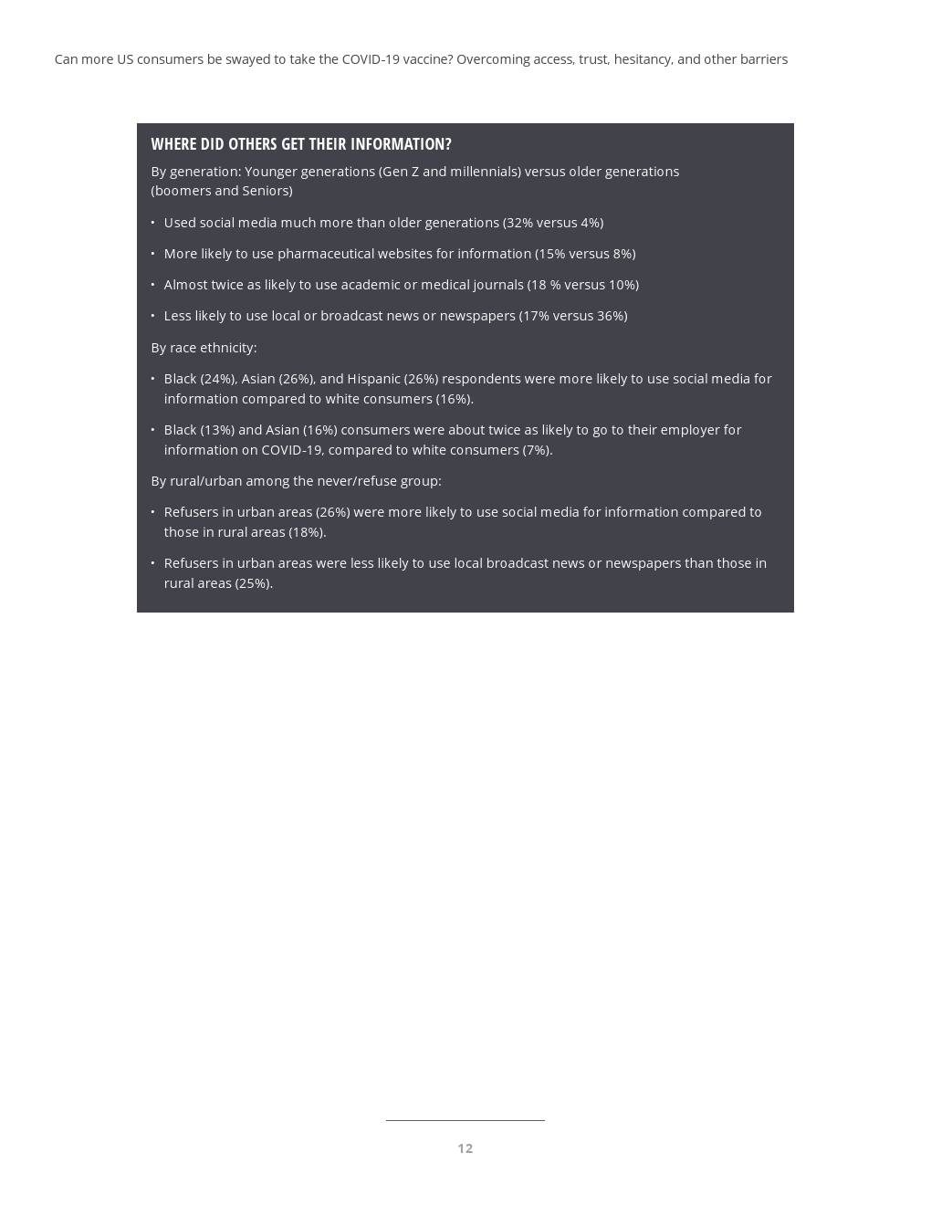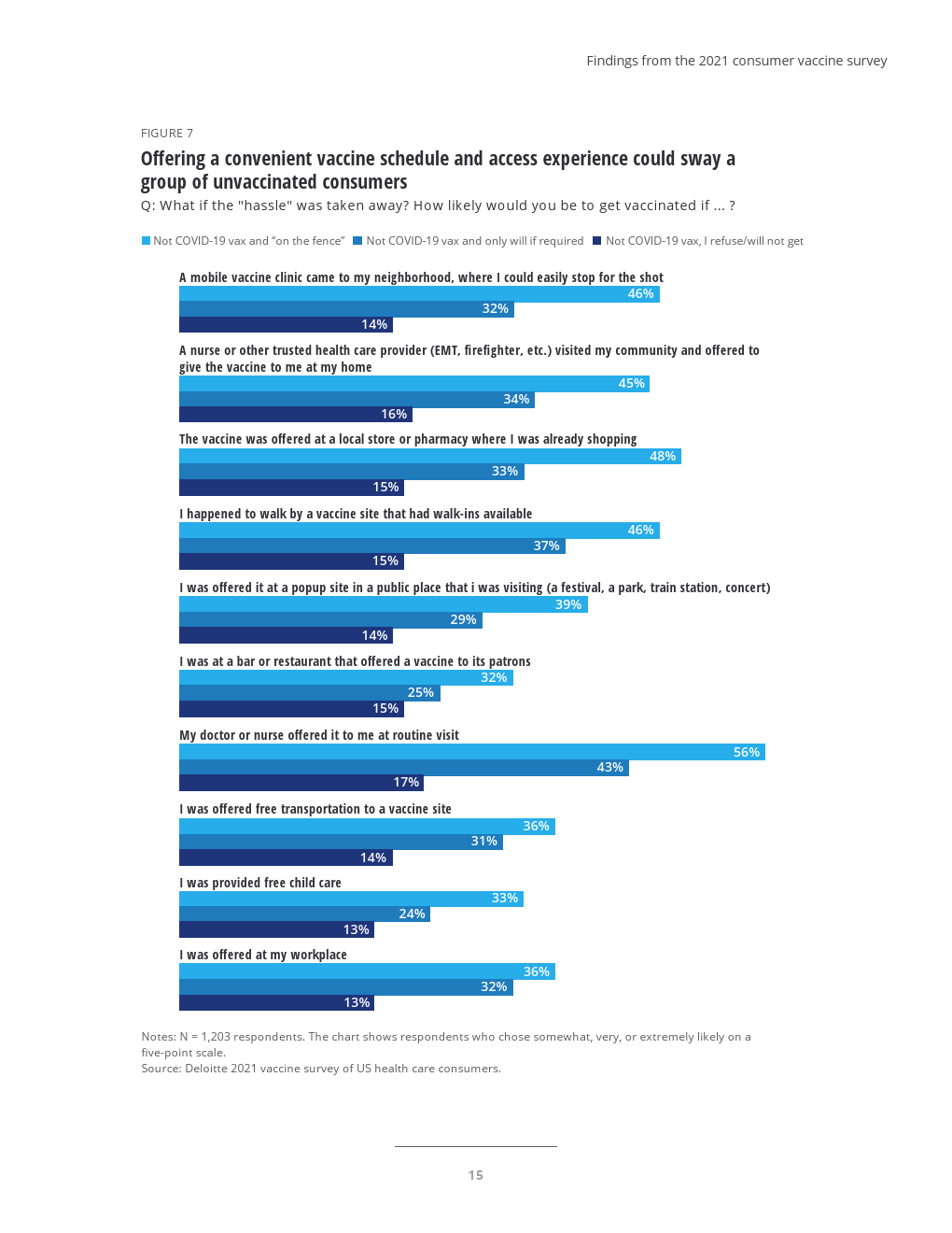 德勤对3000名美国成年人(18岁及以上)进行了一项具有全国代表性的研究,其中包括1200名未完全接种疫苗的人。报告探讨了不同消费者群体对疫苗状况的看法,包括: