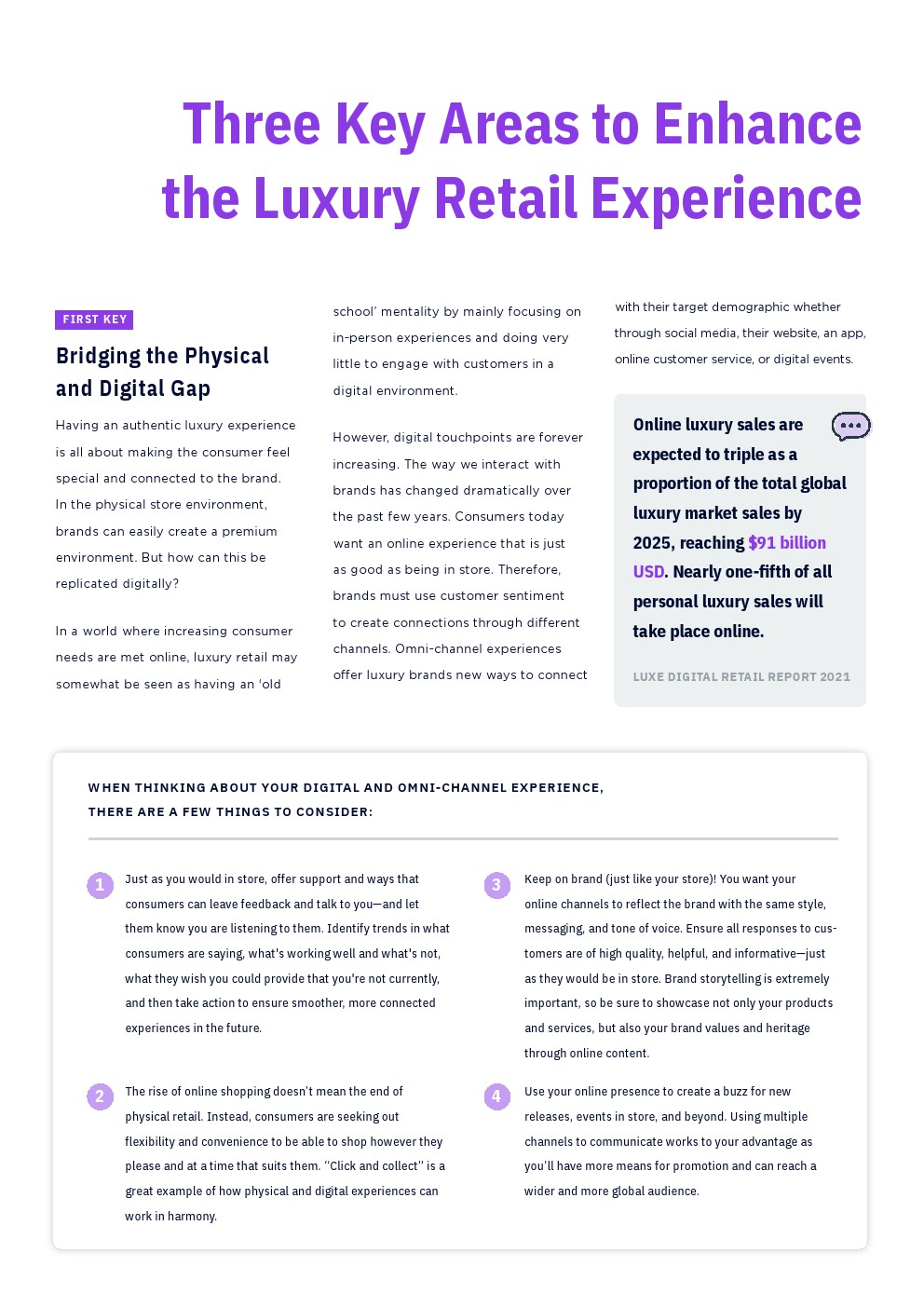 提升奢侈品零售体验包括三个关键领: