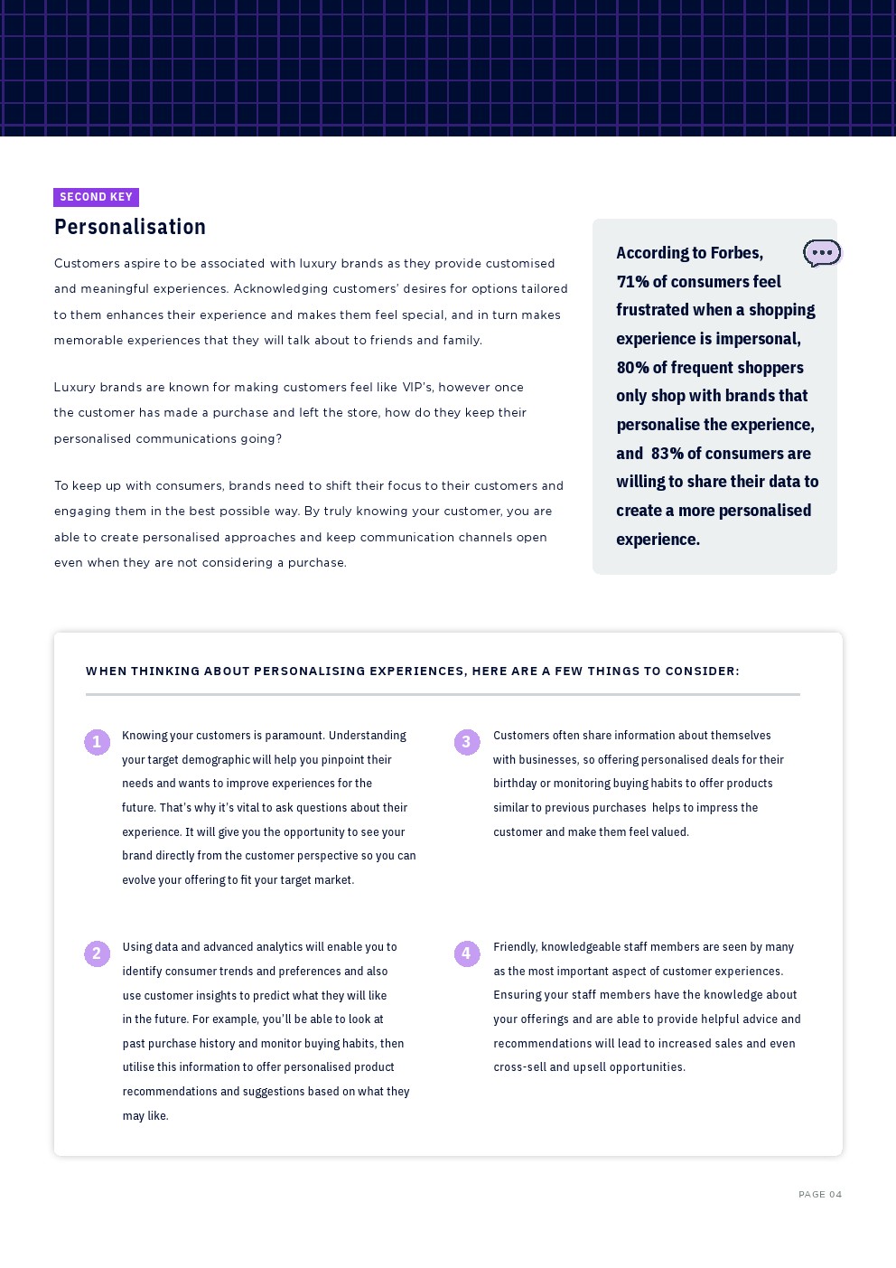 为了跟上消费者的步伐,品牌需要将重点转移到客户身上,并以最佳方式吸引他们。通过真正了解客户,品牌可以创建个性化的方法,并保持沟通渠道畅通,即使他们不考虑购买。