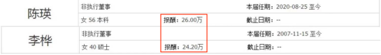 或许也是考虑到年龄的因素,陈瑛在2020年8月末已经被委任为公司的非执行董事了。但不知为何,她的薪资待遇只有26万。