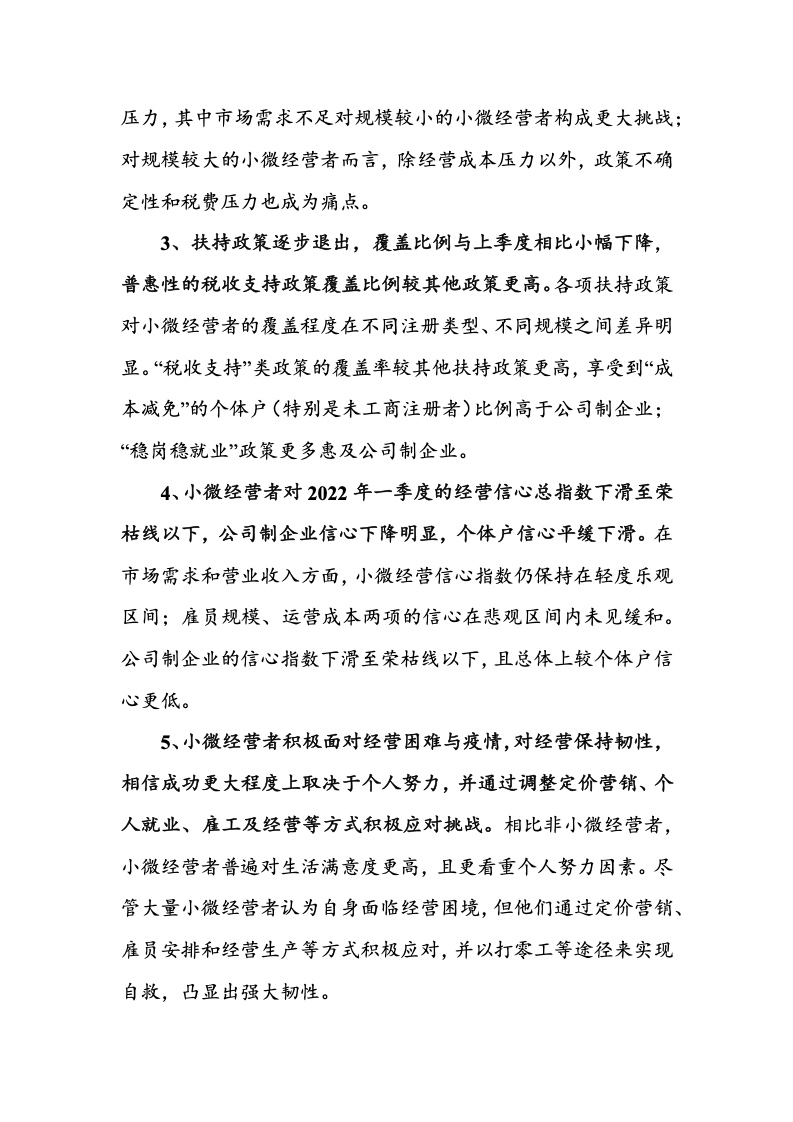 基于本次调研的分析,我国小微经营者在2021年第四季度的经营状况、所面临的压力、扶持政策的覆盖、融资情况,以及对未来的信心等方面呈现以下特点: