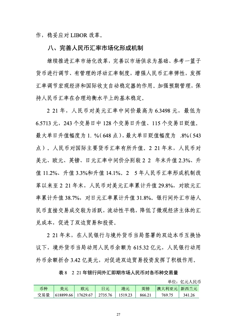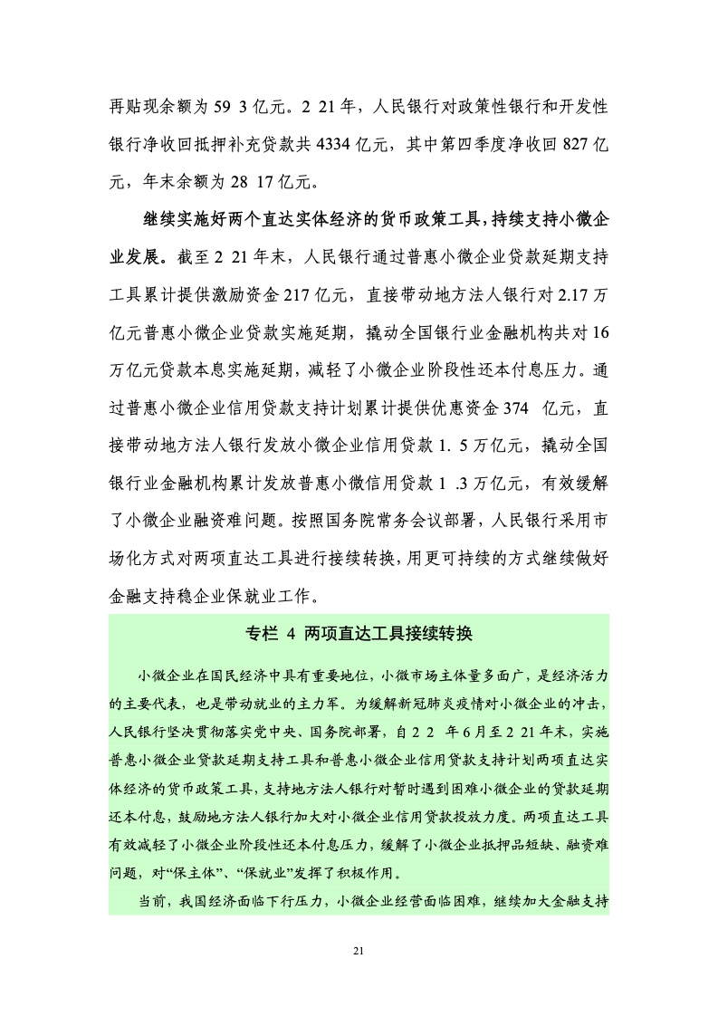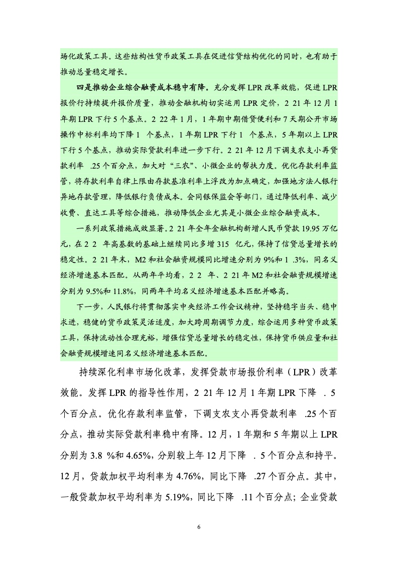 持续深化利率市场化改革,发挥贷款市场报价利率(LPR)改革效能。2021年全年企业贷款利率为4.61%,比2020年下降0.1个百分点,比2019年下降0.69个百分点,是改革开放四十多年来最低水平。