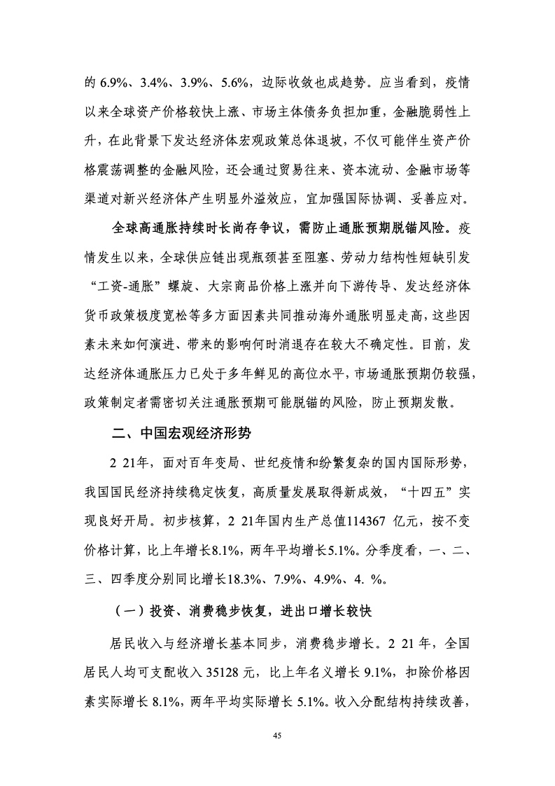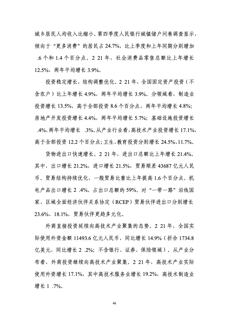 货币供应量与社会融资规模合理增长,有力支持实体经济。2021年末,广义货币供应量(M2)余额为238.3万亿元,同比增长9%。初步统计,12月末社会融资规模存量为314.13万亿元,同比增长10.3%。金融机构对实体经济发放的贷款保持平稳。2021年对实体经济发放的本外币贷款增加20.11万亿元,与2020年基本持平,比2019年多增3.36万亿元。