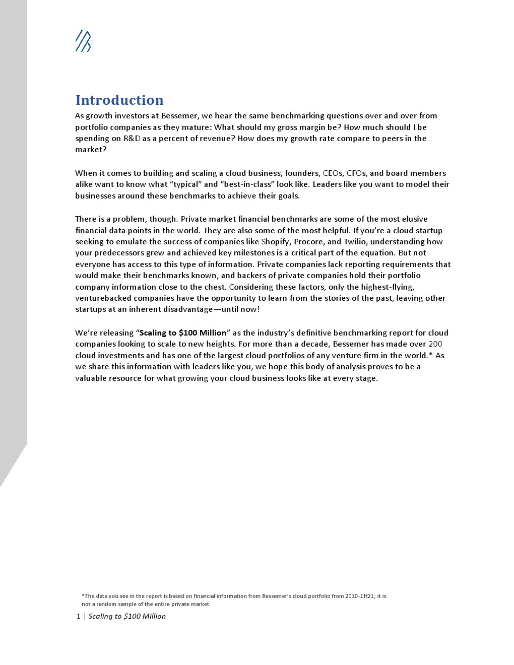 Bessemer发布了报告“扩大到1亿美元”,分析了云企业年度收入如何增长到1亿美元。