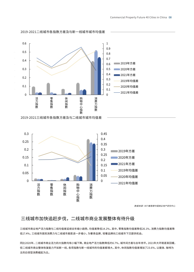 此份《2021中国商业地产话力40城》在延续前四年40城系列报告主体研究框架的基础上,新增城市网红指数等维度的相关性分析,以内容指数、流量指数、热搜指数三大维度重新解构了衡量城市线上网络热度的指标。在商业创新部分,研究设立艺术、文化、商务、技术、人才等城市发展多维度指标,旨在从城市商业发展资源及潜力视角探究城市商业增长要义。