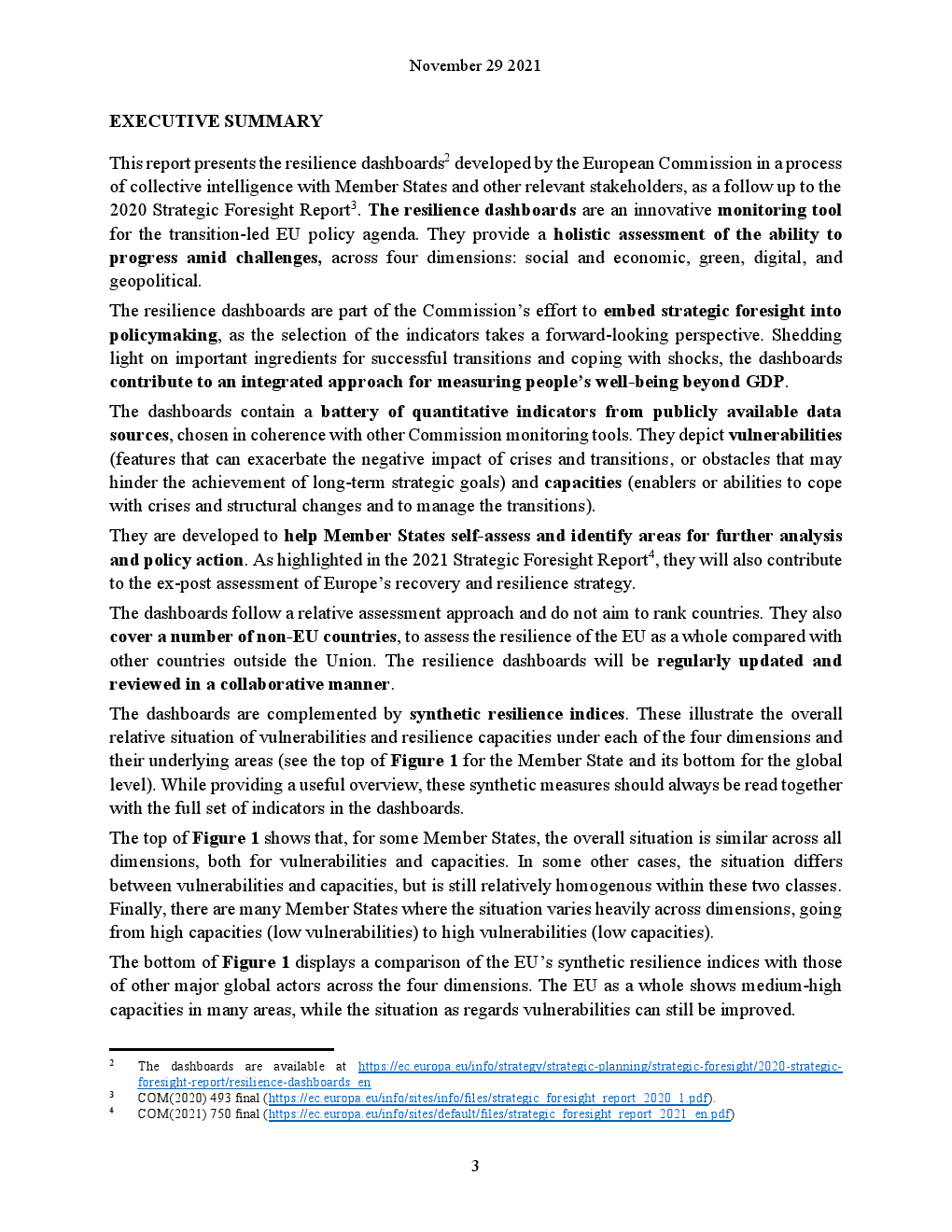 仪表盘采用相对评估方法,并不旨在对国家进行排名。它们还包括一些非欧盟国家,以评估欧盟作为一个整体与欧盟以外其他国家相比的弹性。弹性仪表盘将以协作方式定期更新和审查。