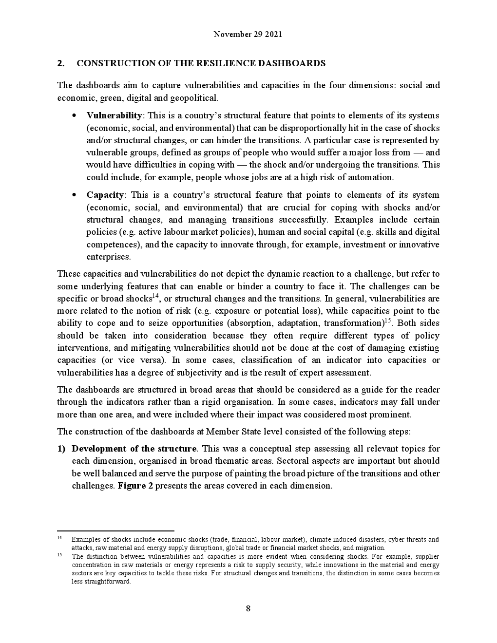 制定这些准则是为了帮助会员国自我评估和确定需要进一步分析和采取行动的领域。正如在2021战略预见报告中所强调的,它们也将有助于事后评估欧洲的恢复战略。