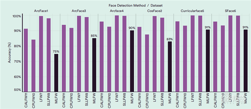 人脸检测:虽然目前的一些面部识别算法的成功率接近100%,但因为疫情的影响,戴口罩面部识别成为了AI技术新的挑战。2021年,北京邮电⼤学的研究⼈员发布 了6000张蒙⾯⼈脸的⼈脸识别数据集,以应对⼤规模戴⼝罩带来的新识别挑战。研究⼈员在各种⾯部识别数据集上运⾏了⼀系列现有的最先进的检测算法,结果表明,与未蒙⾯相⽐,顶级⽅法在蒙⾯⾯孔上的表现要差 5 到 16 个百分点。