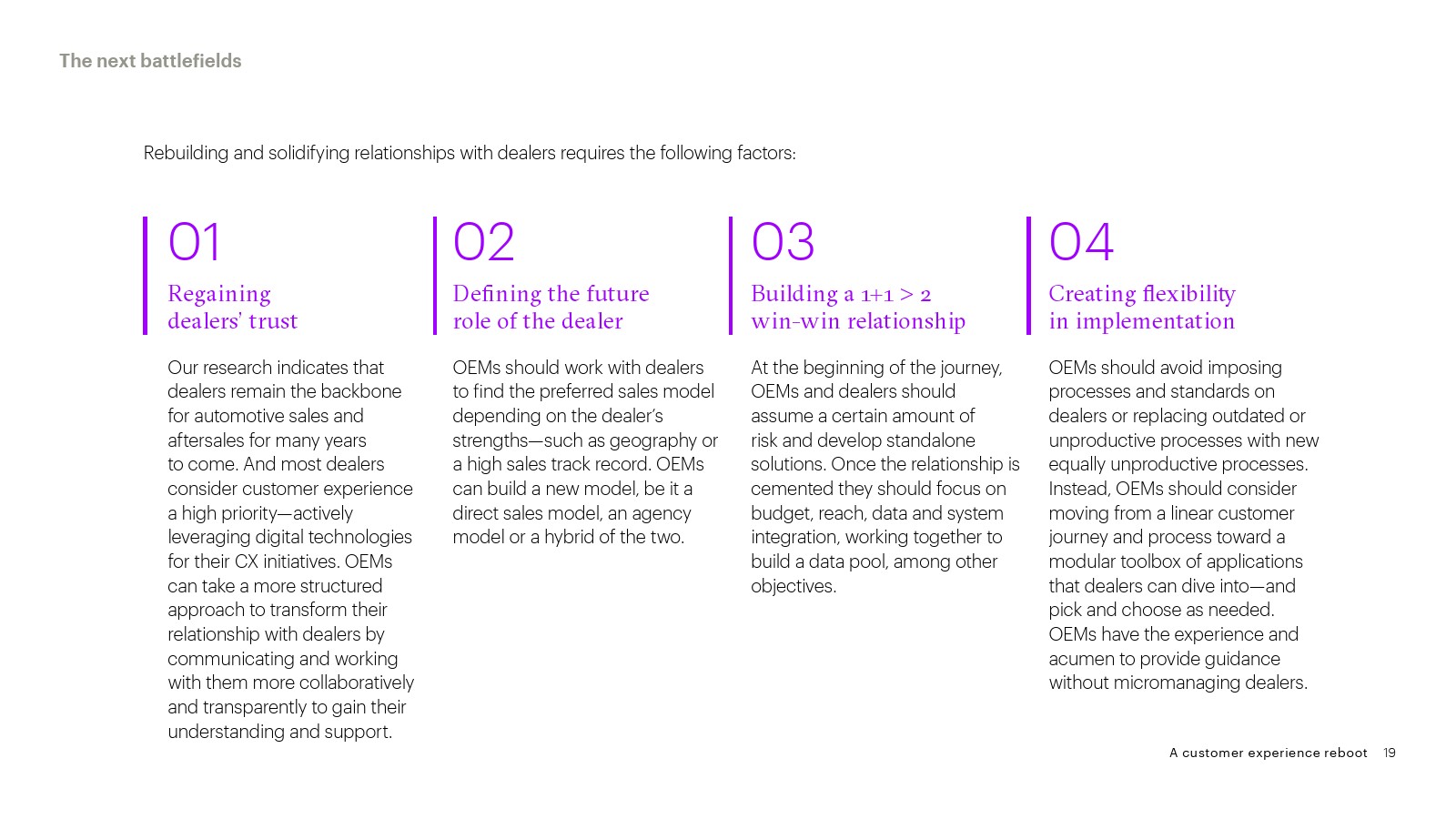 埃森哲建议汽车制造商应采取四项行动来重建和巩固与经销商的关系: