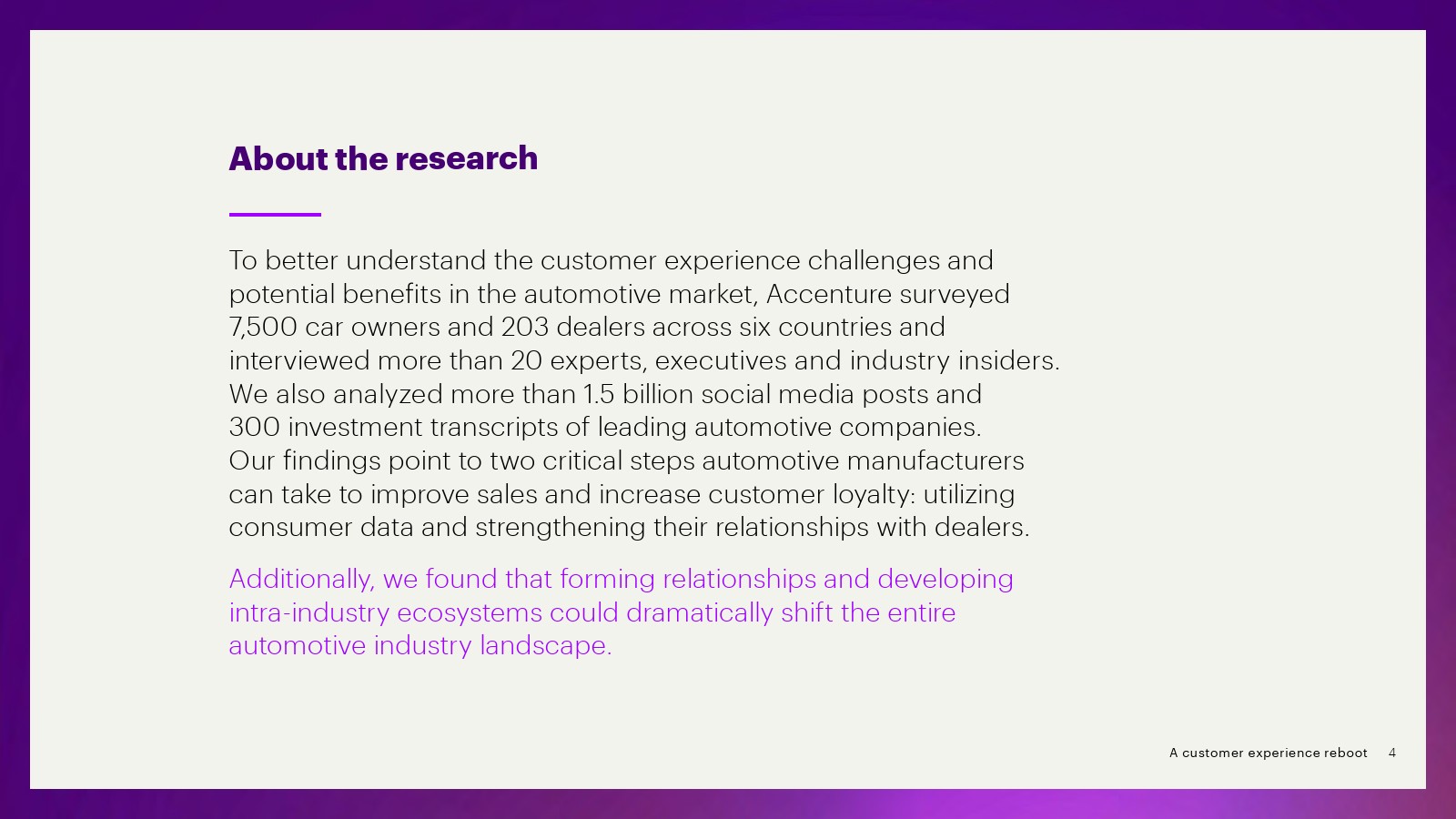 埃森哲发布了新报告“重启客户体验”。汽车制造商必须加强与经销商的关系,以改善客户体验、促进销售并提高消费者忠诚度。