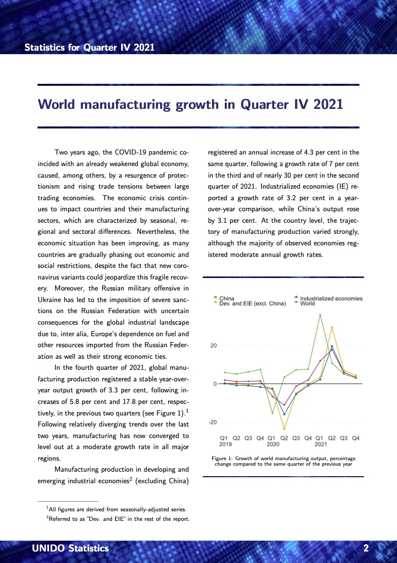 3. 工业化国家在2021年第四季度实现了3.2%的年产出增长;发展中和新兴工业经济体(不包括中国)的制造业产出增长率为4.3%;中国的产出增长了3.1%,创自2006年以来的新低(去除2020年上半年与疫情相关的季度)。