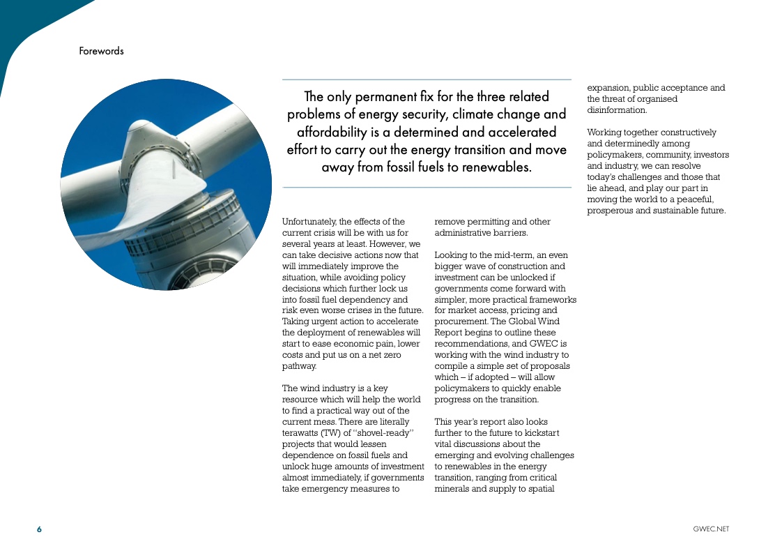 ·在当前的全球形势下,能源政策也处于不断变化中,新的政策必须要能够推动风电的快速发展,从而实现净零排放并保证能源安全