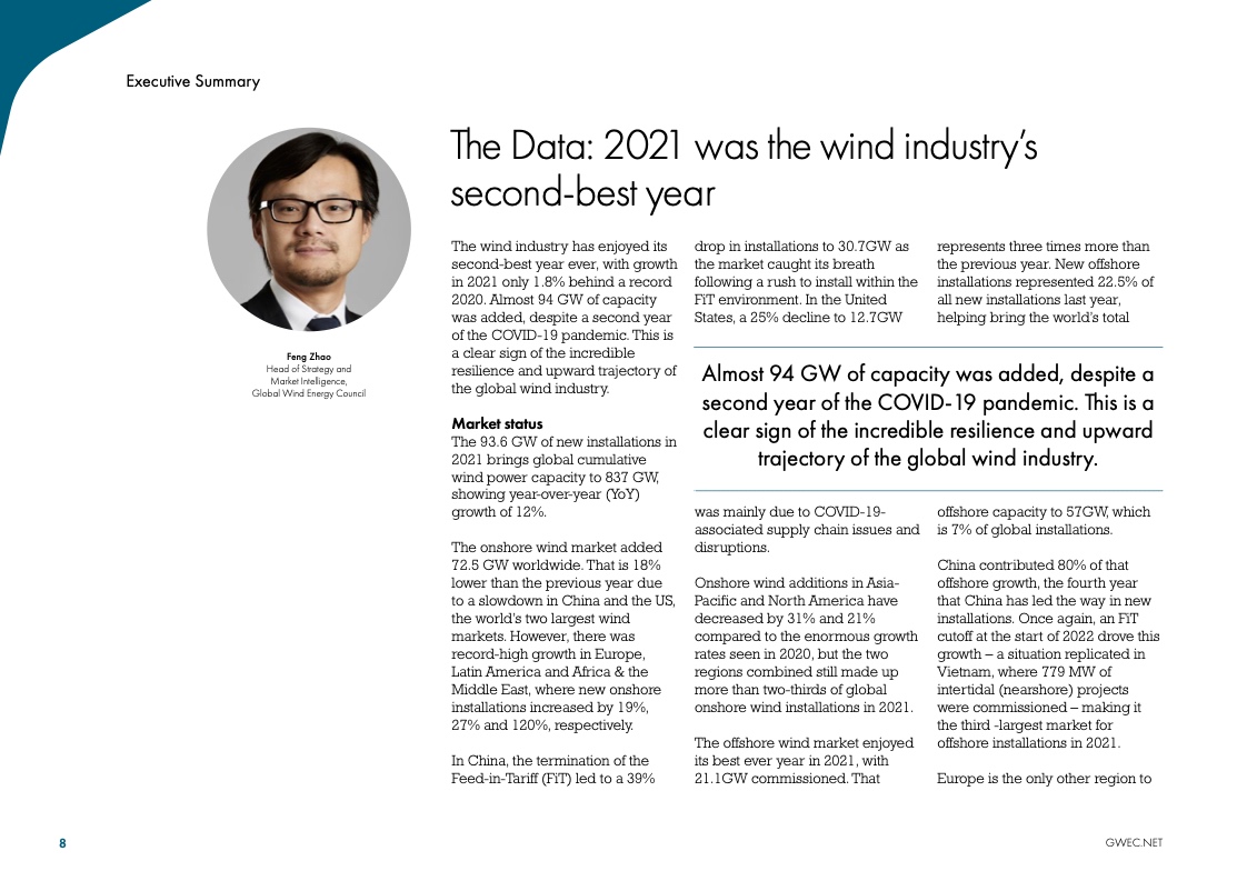 ·2021年全球新增近94GW风电装机,为历史第二高年份