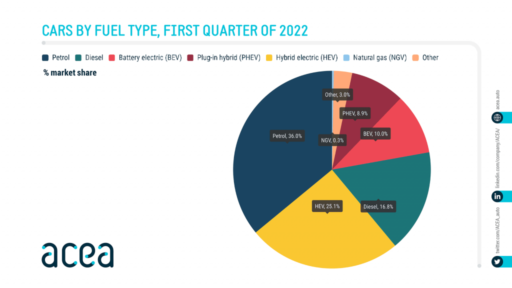 另一方面,虽然汽油和柴油驱动的汽车失去了更多市场份额,但它们依然主导着市场,在此期间市场占有率依然达到52.8%。