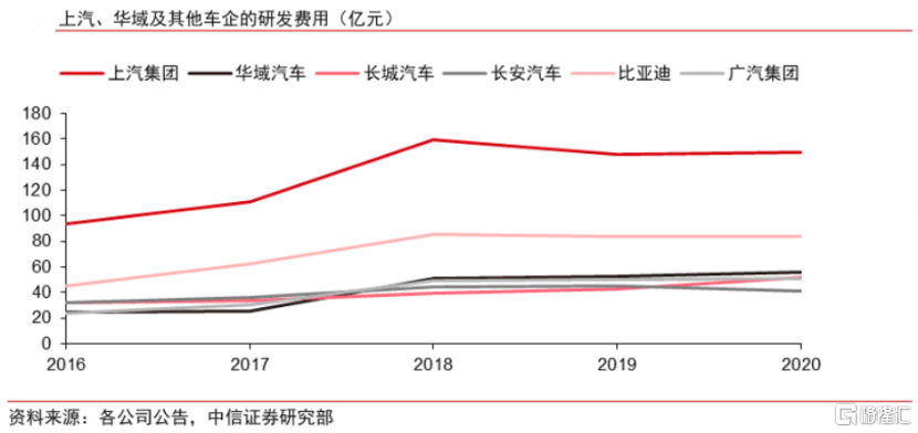 从研发投入来看,上汽集团的研发规模常年稳居国内主机厂第一名,2021年其研发投入达到193亿元。钱是花出去了,但上汽集团在中高端新能源汽车领域的成效甚微。