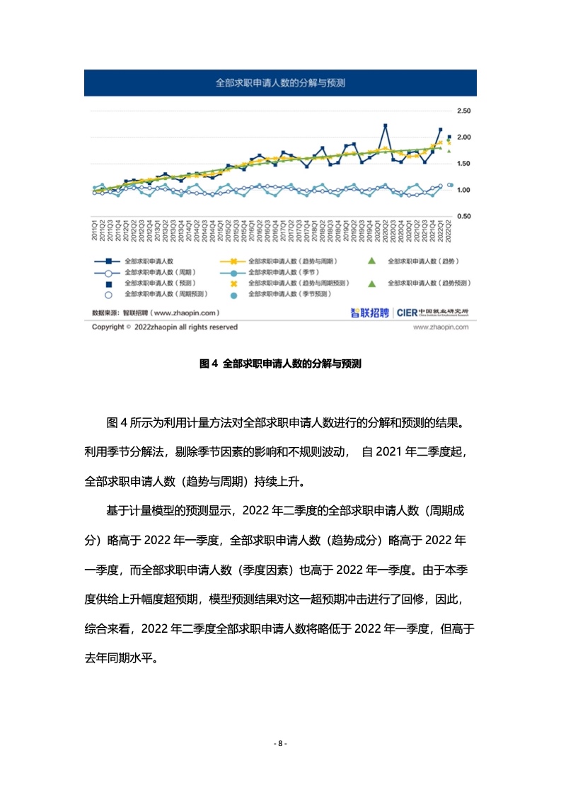 环比来看,一线、新一线、二线和三线等城市求职申请人数季节性增加,招聘需求人数也都增加,但相对而言,增幅均较小,CIER指数季节性下降。