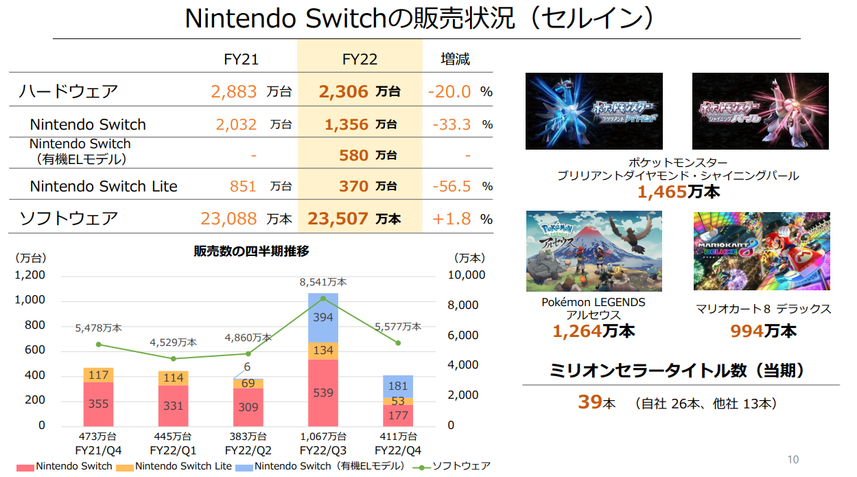 事实上,与2021财年2883万台的销量对比,Switch在2022财年2306万台的销量也确实减少了20%,证明了这一推测。