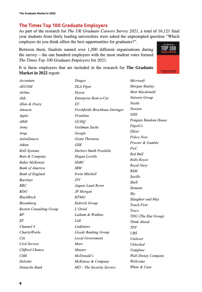 英国毕业生就业报告数据显示:2021-2022年的招聘季中,最受雇主青睐的英国大学TOP5分别是: