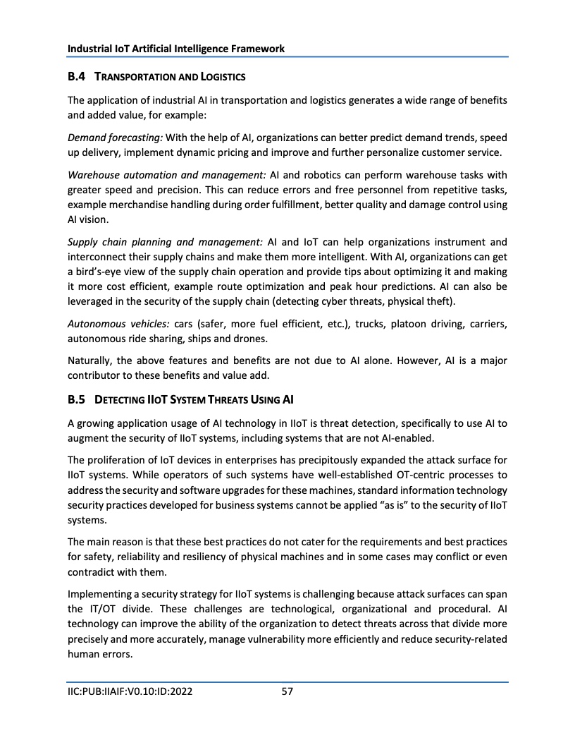 本文档为基于人工智能的工业物联网系统的开发、训练、文档编制、通信、集成、部署和操作提供指导和帮助。它针对来自It和操作技术(OT)的决策者,来自多个学科的业务和技术人员,包括业务决策者、产品经理、系统工程师、用例设计师、系统架构师、组件架构师、开发人员、集成商和系统操作员。